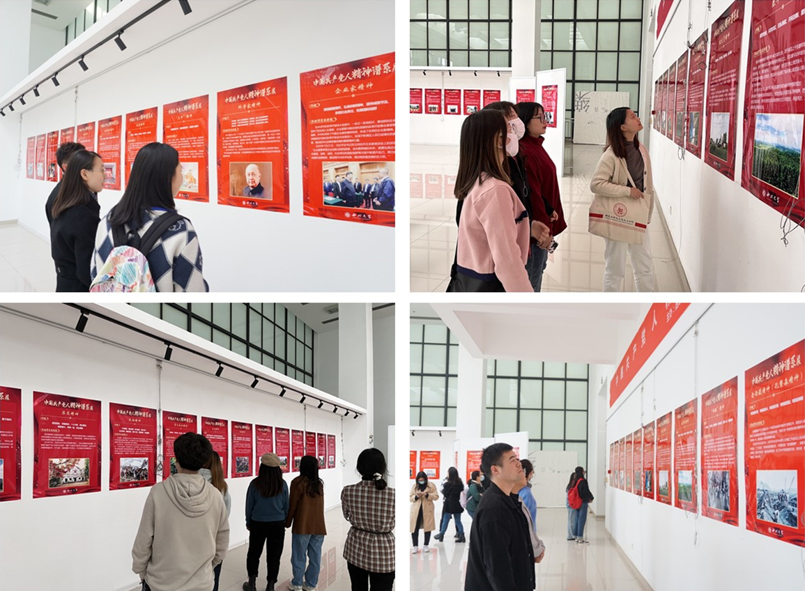 本次展览内容包含每一种伟大精神的内涵、形成背景和时代价值,集中展示了中华民族和中国人民长期以来形成的伟大创造精神、伟大奋斗精神、伟大团结精神、伟大梦想精神。第一批纳入中国共产党人精神谱系的伟大精神,彰显了一代又一代中国共产党人“为有牺牲多壮志,敢教日月换新天”的奋斗精神,展现了我们党历经百年而风华正茂,饱经磨难而生生不息的革命加拼搏的强大精神。本次展览还同时展出了近年来由beat365官网马克思主义学院教师撰写并出版的马克思主义理论研究、党史研究和思想政治教育研究等方面的著作40余部。展览正式开展后,吸引了众多师生前往观看学习。11月3日下午,马克思主义学院党委组织学生党员集中观看了展览,在学生党员中引发了热议。