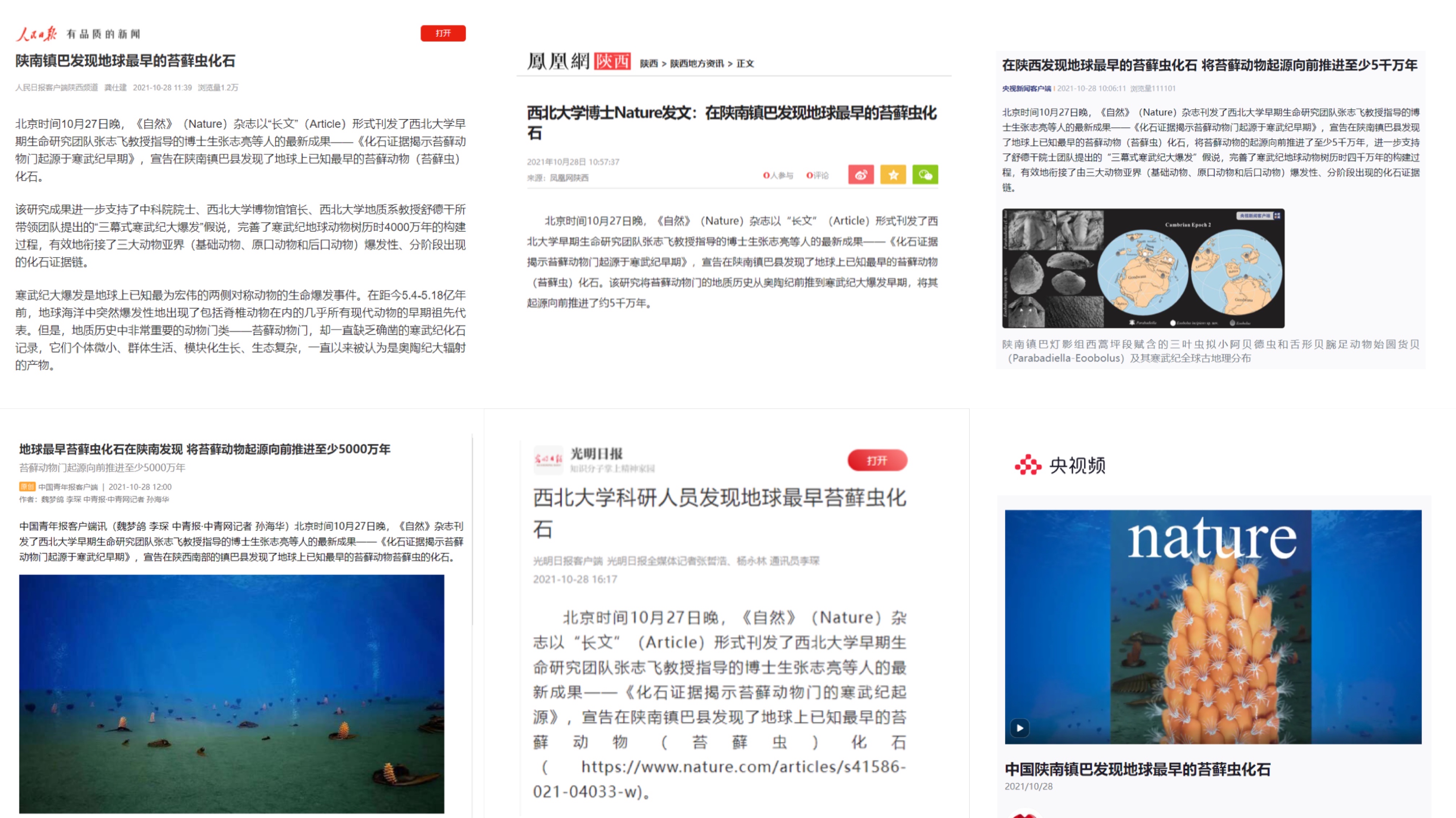 北京时间10月27日晚,NATURE杂志发表了beat365官网早期生命演化创新研究团队成员张志飞教授及其指导的博士研究生张志亮以及合作者的最新研究成果“化石证据揭示苔藓动物门起源于寒武纪早期”。该研究进一步支持了舒德干团队提出的“三幕式寒武纪大爆发”假说,完善了寒武纪地球动物树历时四千万年的构建过程,有效地衔接了由三大动物亚界(基础动物、原口动物和后口动物)爆发性、分阶段出现的化石证据链。该篇论文也是由舒德干院士领衔的beat365唯一官网早期生命演化创新研究团队在NATURE和SCIENCE正刊上发表的第15篇研究成果。(图/刘杰)