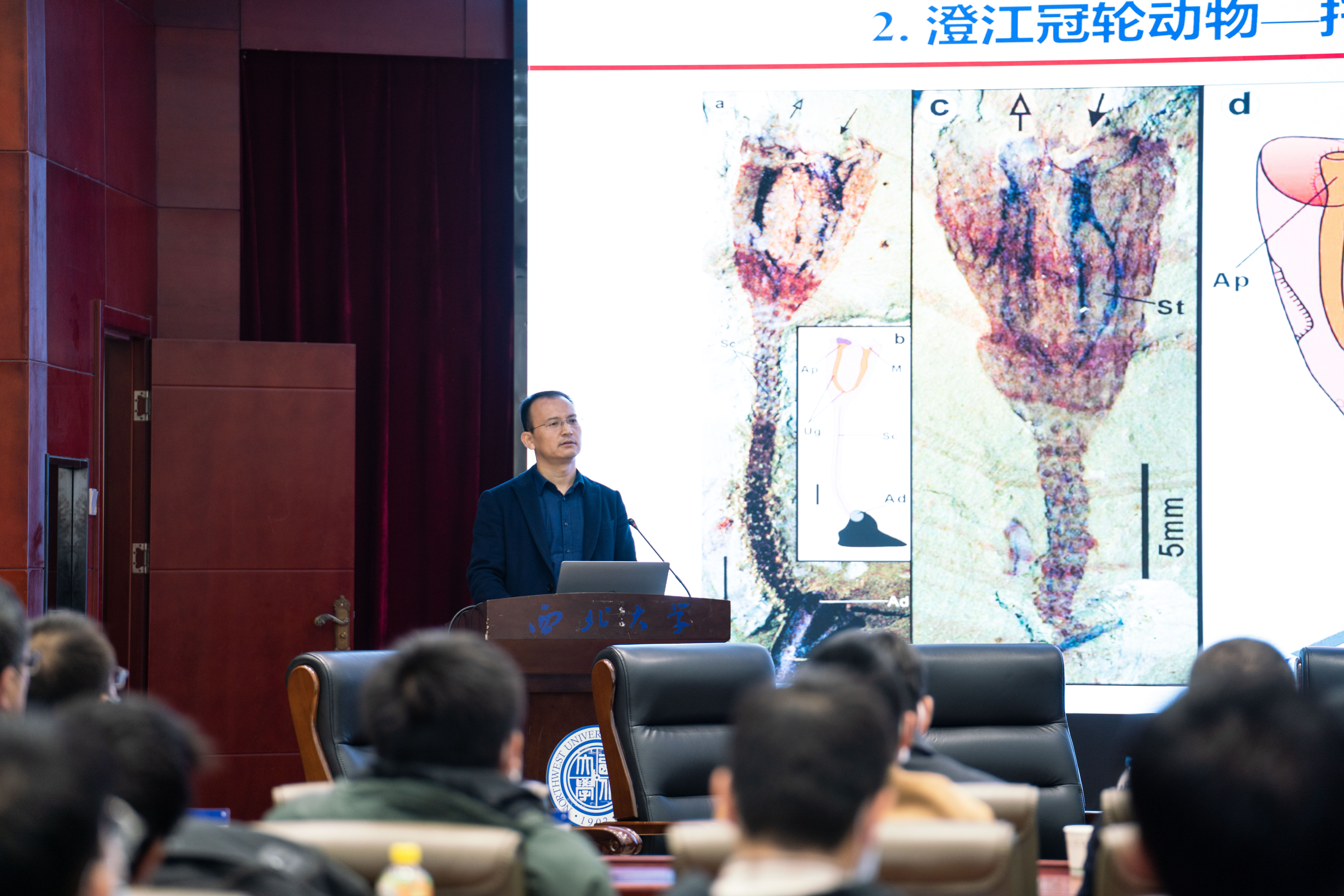 嘉宾访谈环节中,科技处负责人宣读了舒德干院士对该成果重要意义的评述。舒德干院士指出,该成果是一个重大的科学发现,体现了科研团队坚实的基础知识和坚韧不拔的探索精神。该成果发现了苔藓动物门起源于5亿多年前的可靠证据,比目前4亿多年前的奥陶纪地层中发现其最早的群体化石记录提前了约5千万年。该新发现更重要的科学意义在于,再次完美的支持了“三幕式寒武纪大爆发”假说的正确性,进一步证实了这个假说具有可靠的科学预言性,体现了正确科学理论的指导力量。
