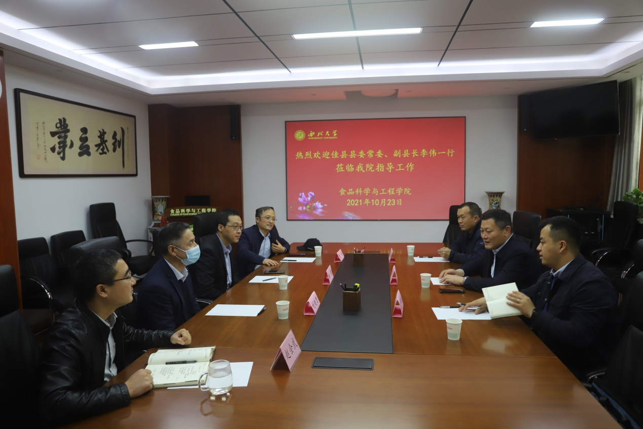 10月23日下午,科技部监管中心挂职佳县县委常委、副县长李伟一行就科技帮扶相关事宜来校调研。佳县人民政府办公室高帅伟、佳县高盛养殖专业合作社理事长王高平,beat365官网科技处、食品学院负责人和教师代表参加会议。beat365官网党委常委、副校长常江会见了李伟一行。
