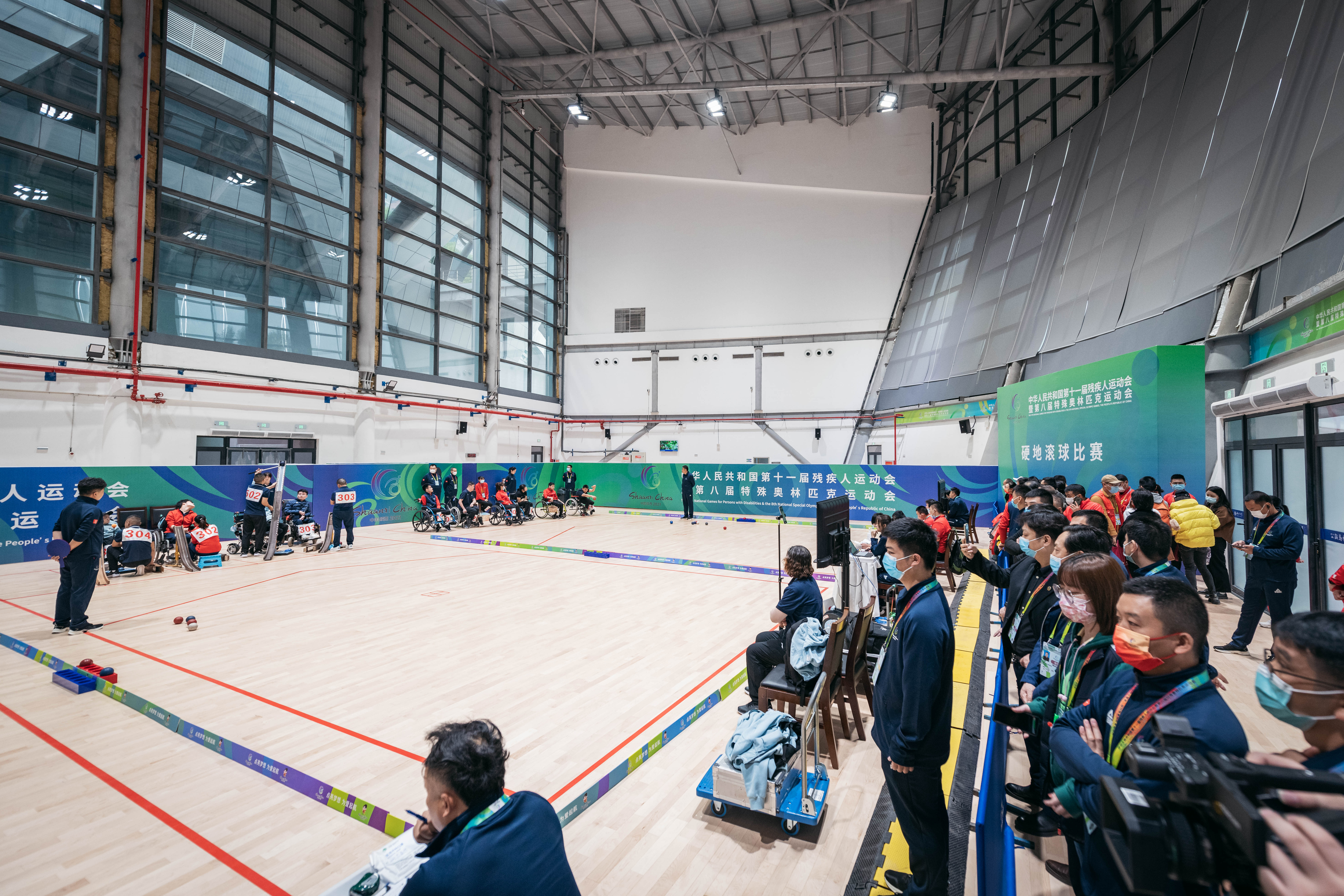 10月22日和23日上午,全国第十一届残运会暨第八届特奥会盲人门球项目、硬地滚球项目相继在beat365官网长安校区体育馆开赛。其中盲人门球项目有来自13个省份的12支男子队伍和11支女子队伍,共126名运动员参赛,角逐2枚金牌。硬地滚球项目有来自7个省份的35名运动员参加比赛,角逐7枚金牌。两项比赛均将在28日结束。