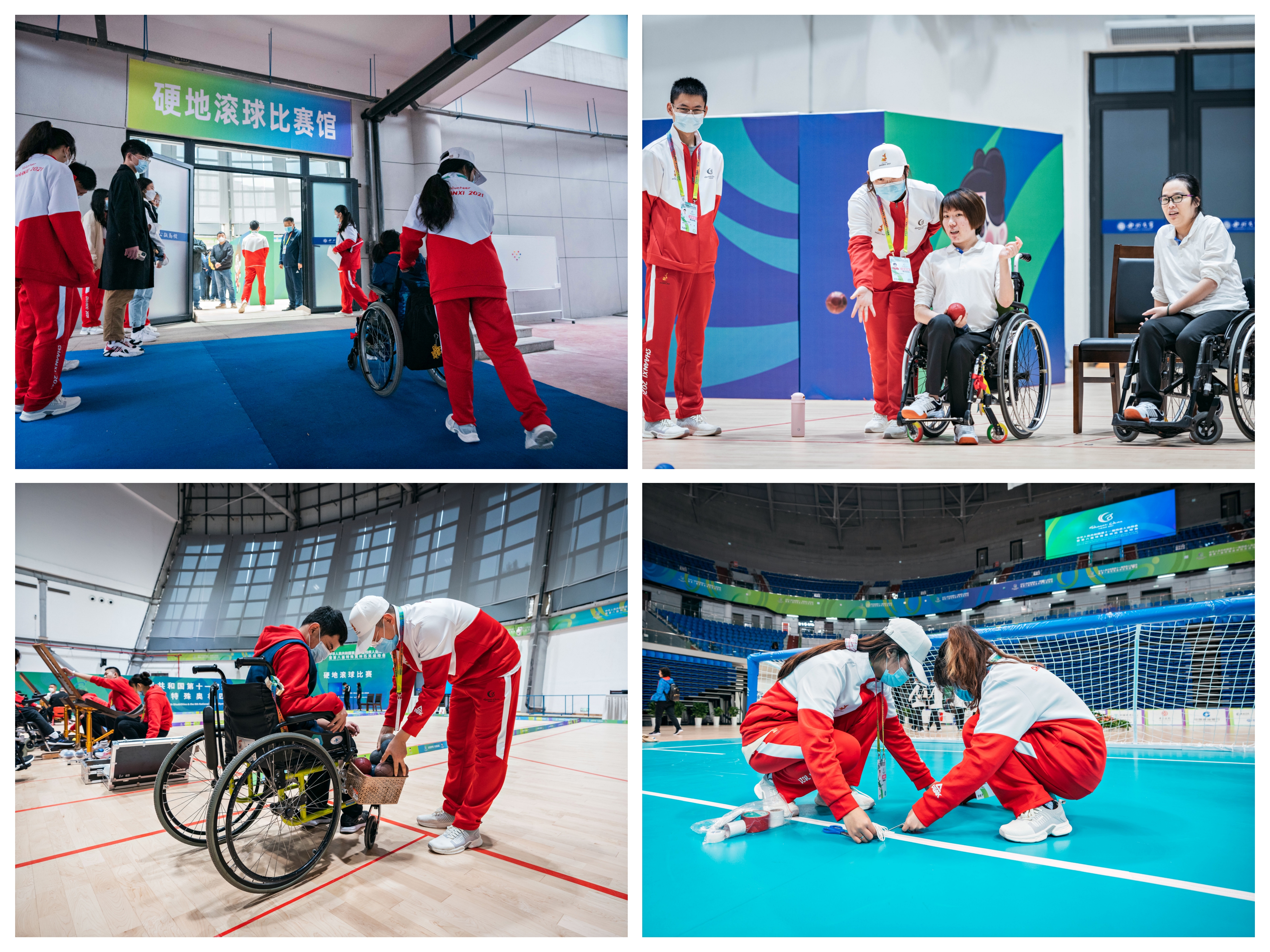 在同一时段举行盲人门球、硬地滚球项目,对赛事组织能力提出更高的要求。学校以‘两个盛会、同样精彩’为办赛目标,于3月初组建项目竞委会,先后制订了工作实施方案、转换期工作方案,定期召开校地联席筹办会、工作推进会,力争为参赛运动员提供便利、顺畅、安全的服务。9月中上旬,学校承办的十四运会蹦床、艺术体操两项赛事结束后,再接再厉,精心策划,周密组织,实现了十四运会和残特奥会的无缝衔接。