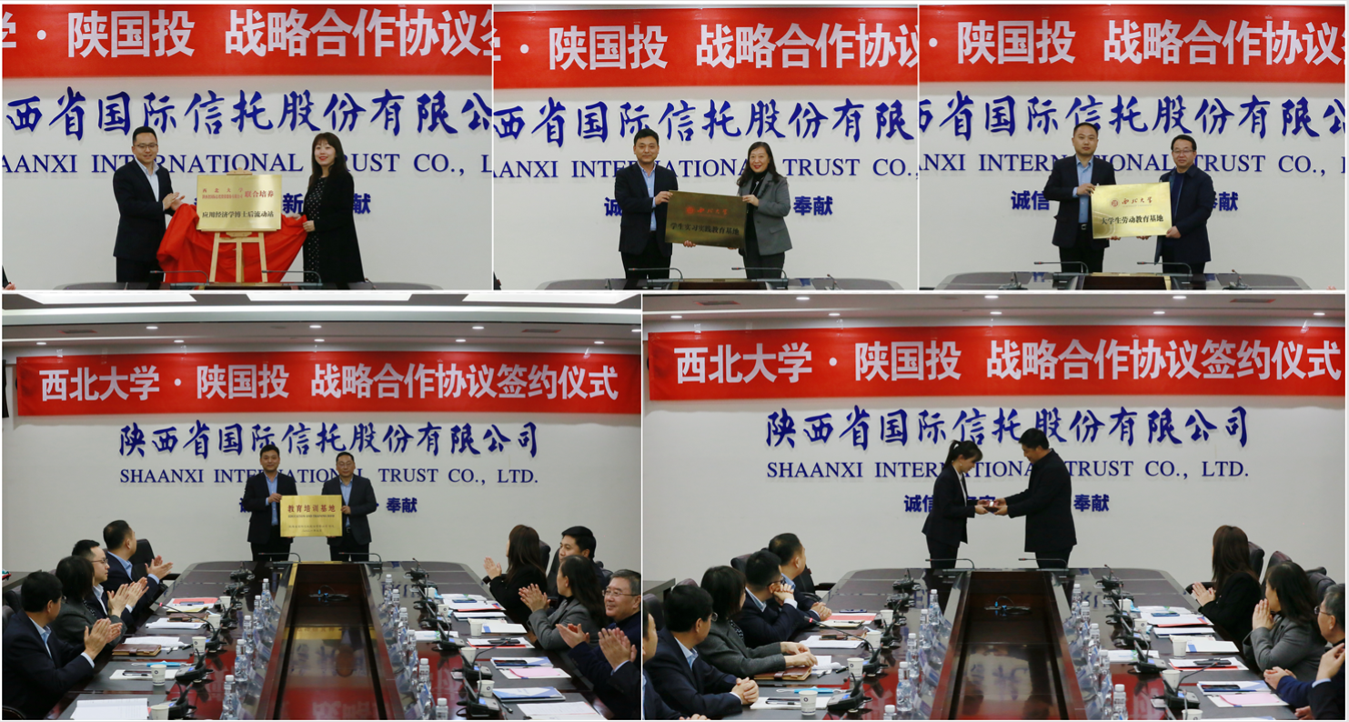 教工部负责人与陕国投创新与研究发展部总经理为联合培养博士后流动站揭牌,教务处负责人为陕国投授牌“学生实习实践教育基地”,学工部负责人为陕国投授牌“大学生劳动教育基地”。陕国投党委组织部负责人为beat365官网经管学院“教育培训基地”授牌。国内处负责人为校友代表赠送蓝田玉石印章。