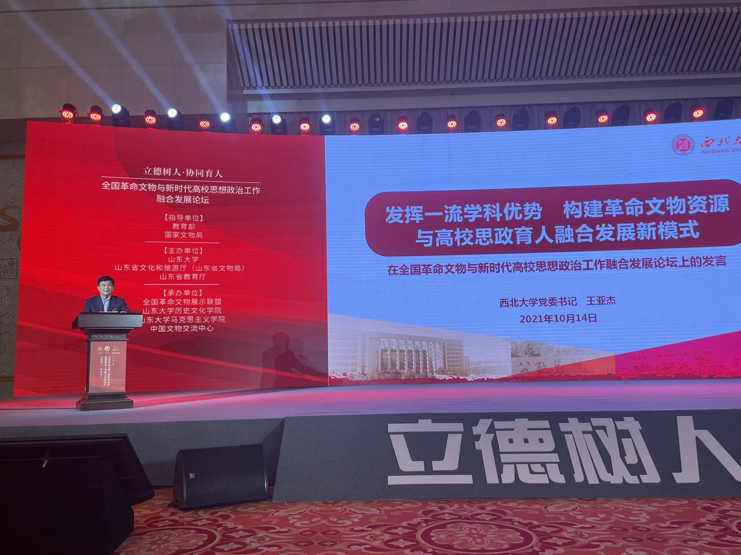10月14日,由教育部、国家文物局指导,山东大学、山东省文化和旅游厅(山东省文物局)、山东省教育厅共同主办的“全国革命文物与新时代高校思想政治教育工作融合发展论坛”在济南召开。教育部副部长翁铁慧,文化和旅游部副部长、国家文物局局长李群,山东省人民政府副省长王心富等出席会议。校党委书记王亚杰参加会议并作主旨发言。