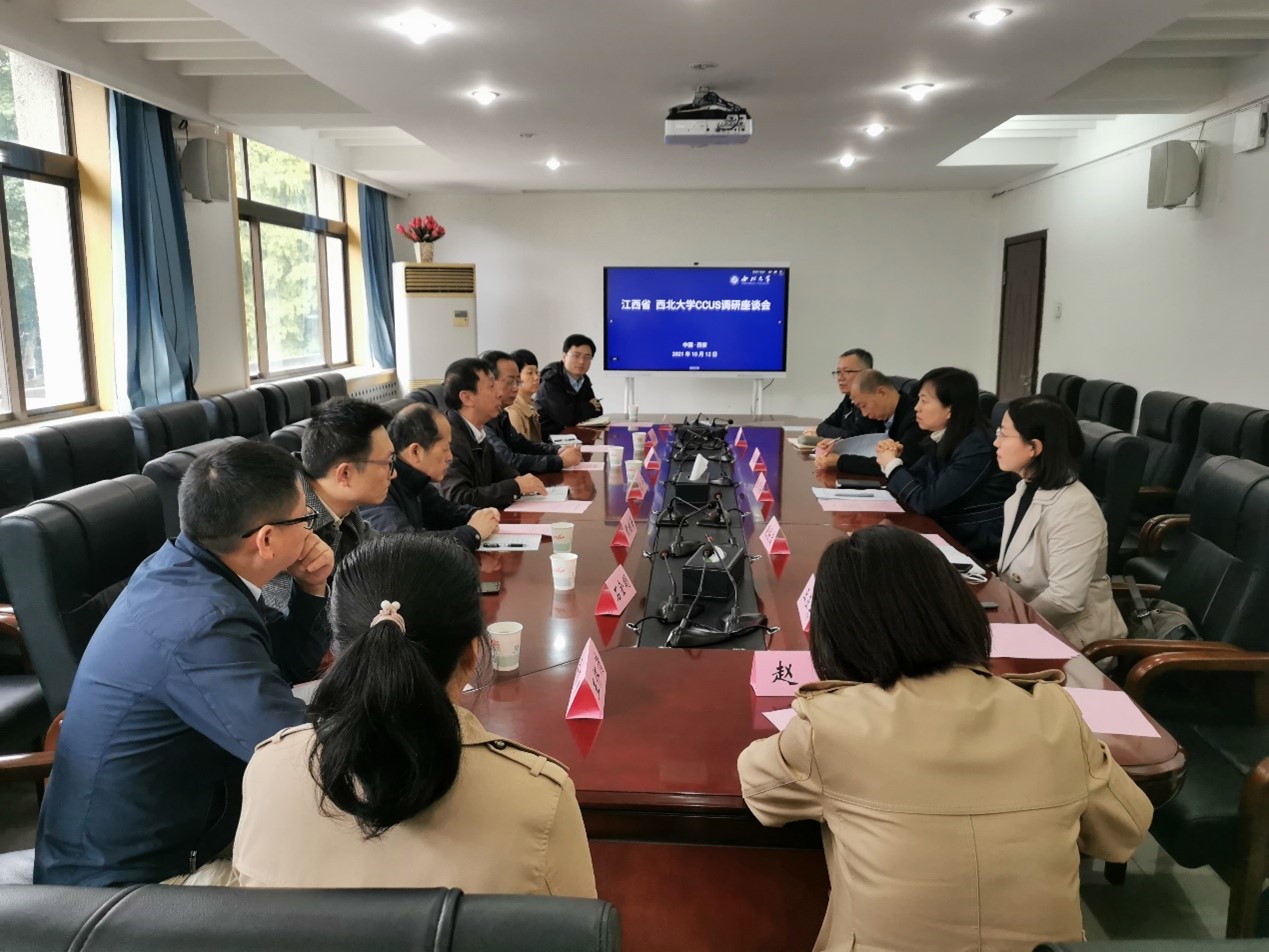 10月12日,由江西省生态环境厅二级巡视员沈丰带队的江西省代表团一行来beat365官网就碳捕集、利用与封存(CCUS)技术在火电和水泥等行业的应用进行调研。江西省气象局总工程师殷剑敏,江西省科学院首席科学家熊继海,江西省生态环境厅应对气候变化处、江西省科学院能源研究所、江西省生态气象中心、北京中创碳投区域市场部,陕西省生态环境厅应对气候变化处、陕西省环境科学研究院低碳中心,beat365官网科技处、二氧化碳捕集与封存技术国家地方联合工程研究中心负责人及相关教师代表参加座谈。座谈会由陕西省生态环境厅应对气候变化处处长张清香主持。beat365官网党委常委、副校长常江在会前与代表团一行进行了交流。