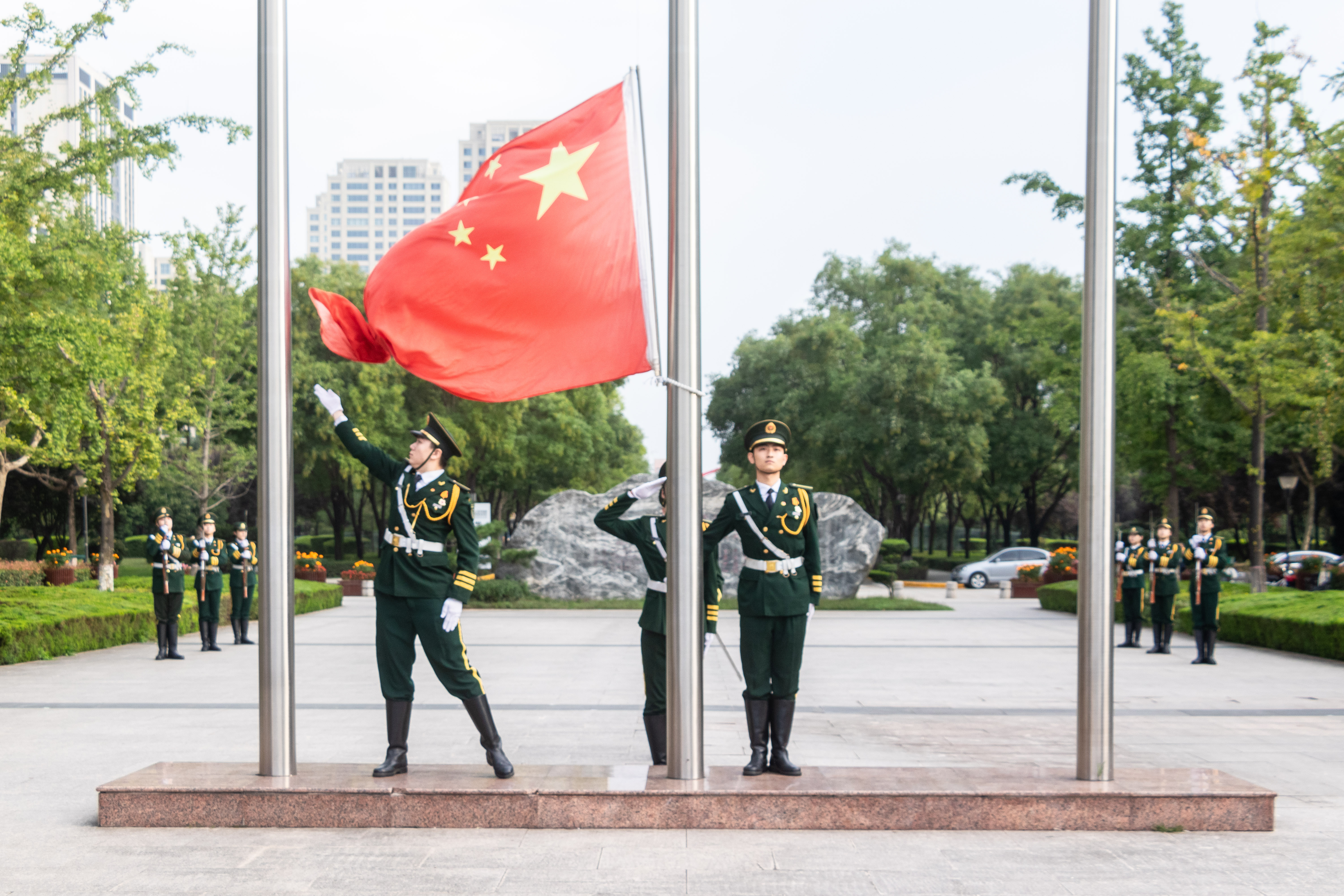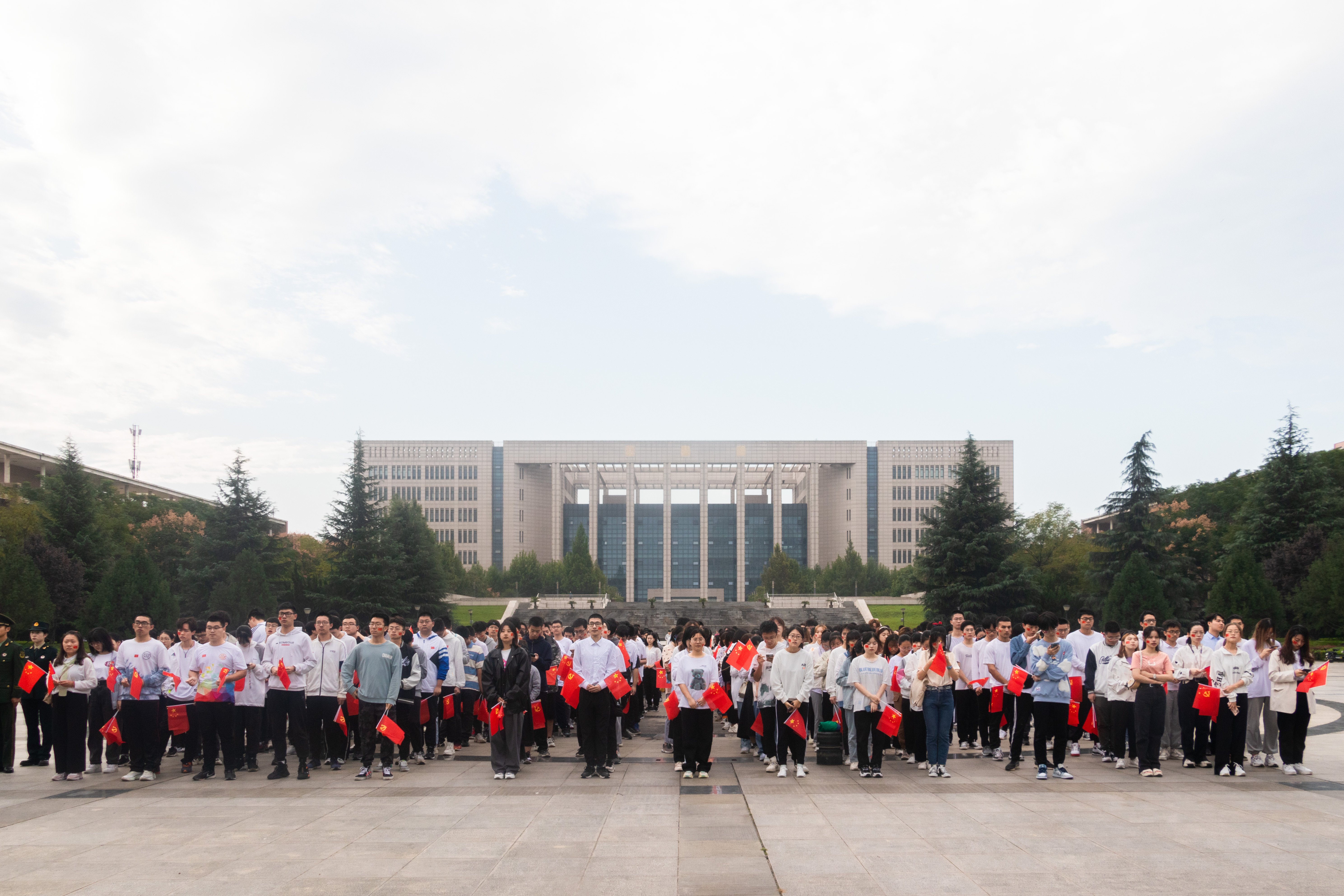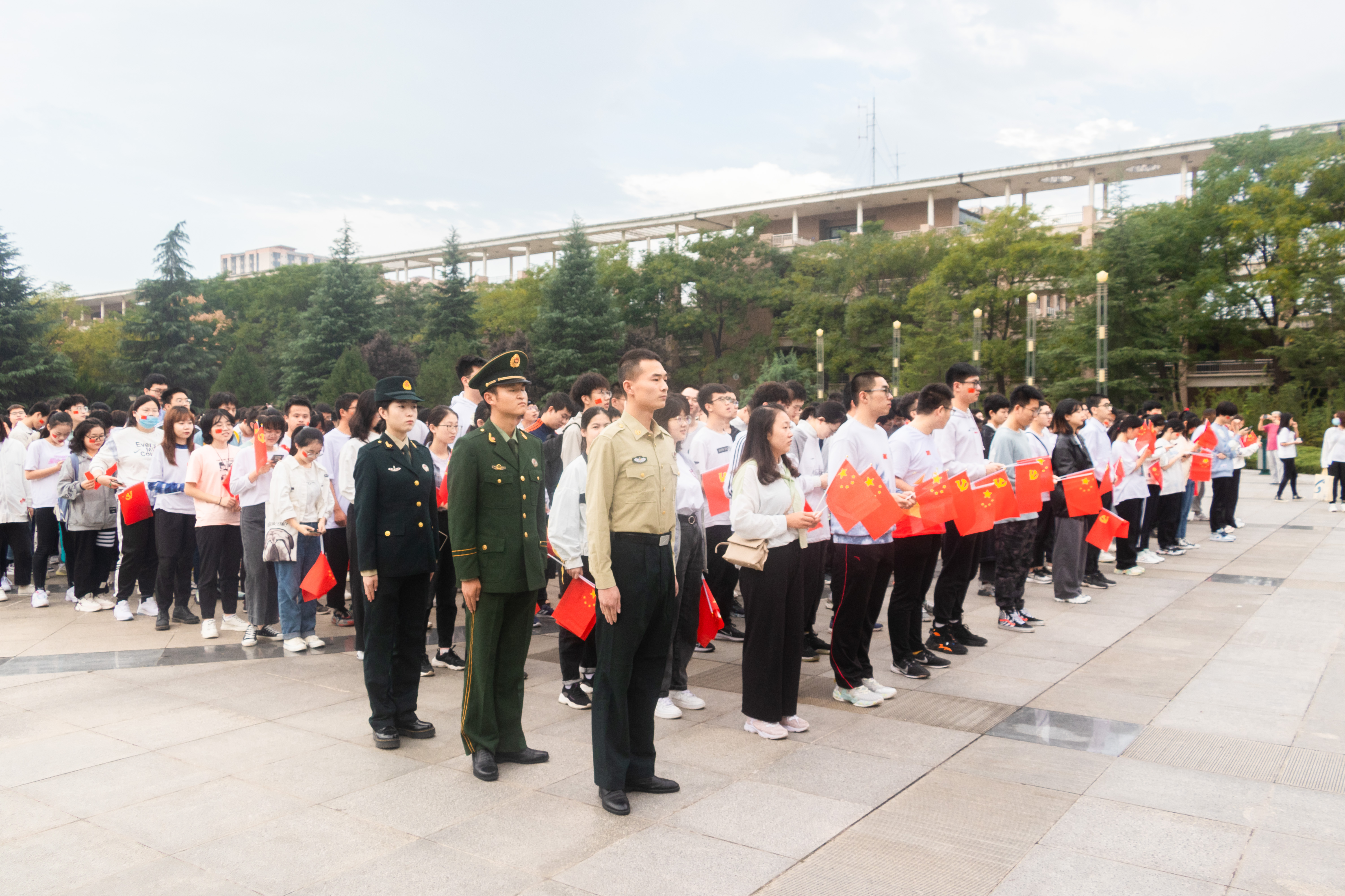 为庆祝中华人民共和国成立72周年,学习宣传贯彻习近平总书记“七一”重要讲话精神,进一步弘扬爱国主义精神、传承红色基因,激发青年学子爱党、爱国、爱社会主义的情怀,beat365官网于10月1日早在长安校区中心广场举行升旗仪式,由beat365唯一官网国旗护卫队担任此次升旗任务。各院系师生代表、团学组织代表到场参加,部分退伍学生以及校内外师生和家属自发前来观礼。