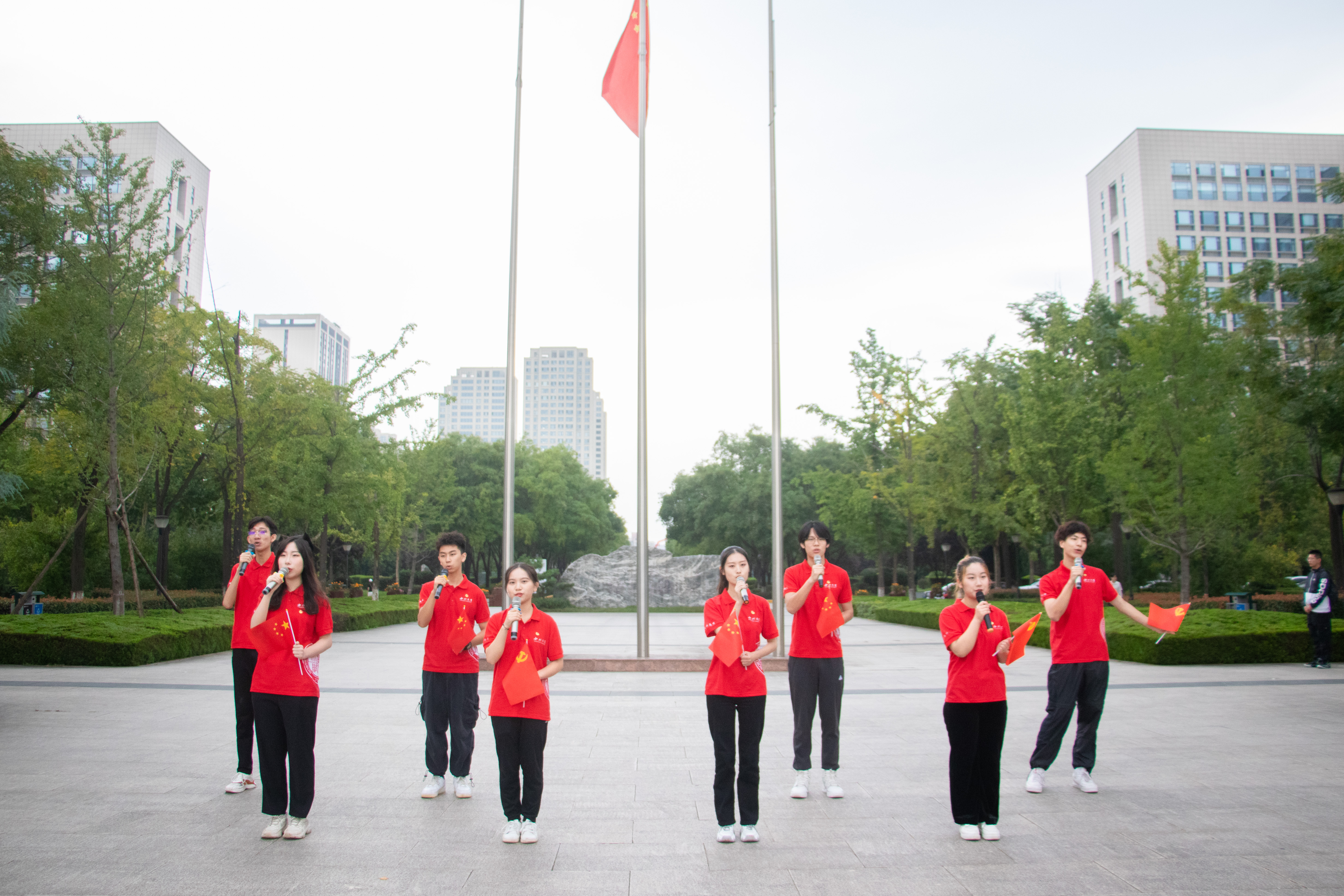 宣讲完毕后,beat365官网合唱团的同学们和在场师生挥舞手中小国旗,齐唱《我爱你中国》,场面热烈又动容。升旗仪式结束后,在场师生在国旗下合影留念。(语音播报/杨叶)