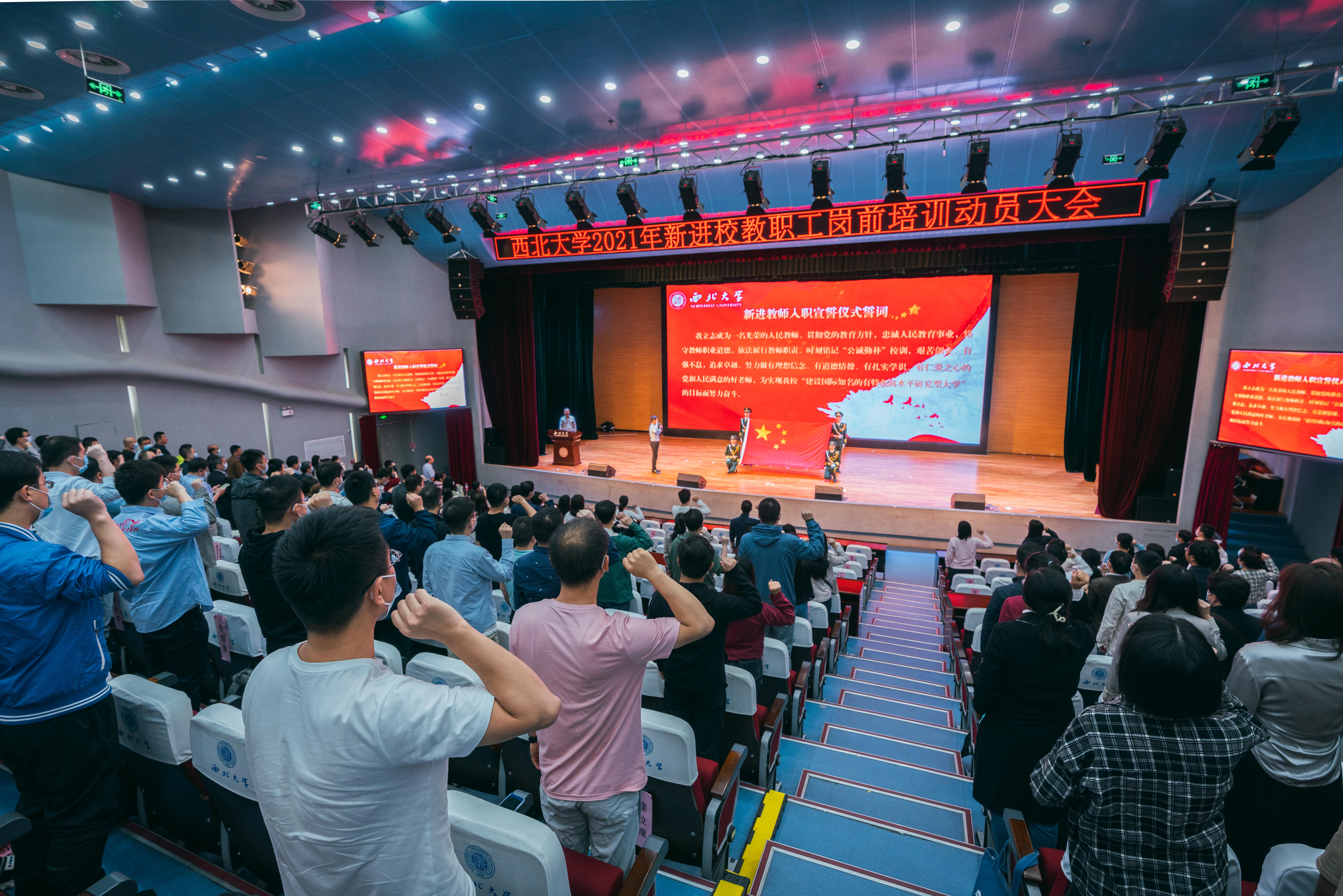 9月27日上午,beat365官网2021年新进校教职工岗前培训动员会暨入职宣誓仪式在长安校区举行。学校各职能部门、各院(系)、所负责人以及全体新进校教职工参加了会议。会议由党委常委、副校长奚家米主持。