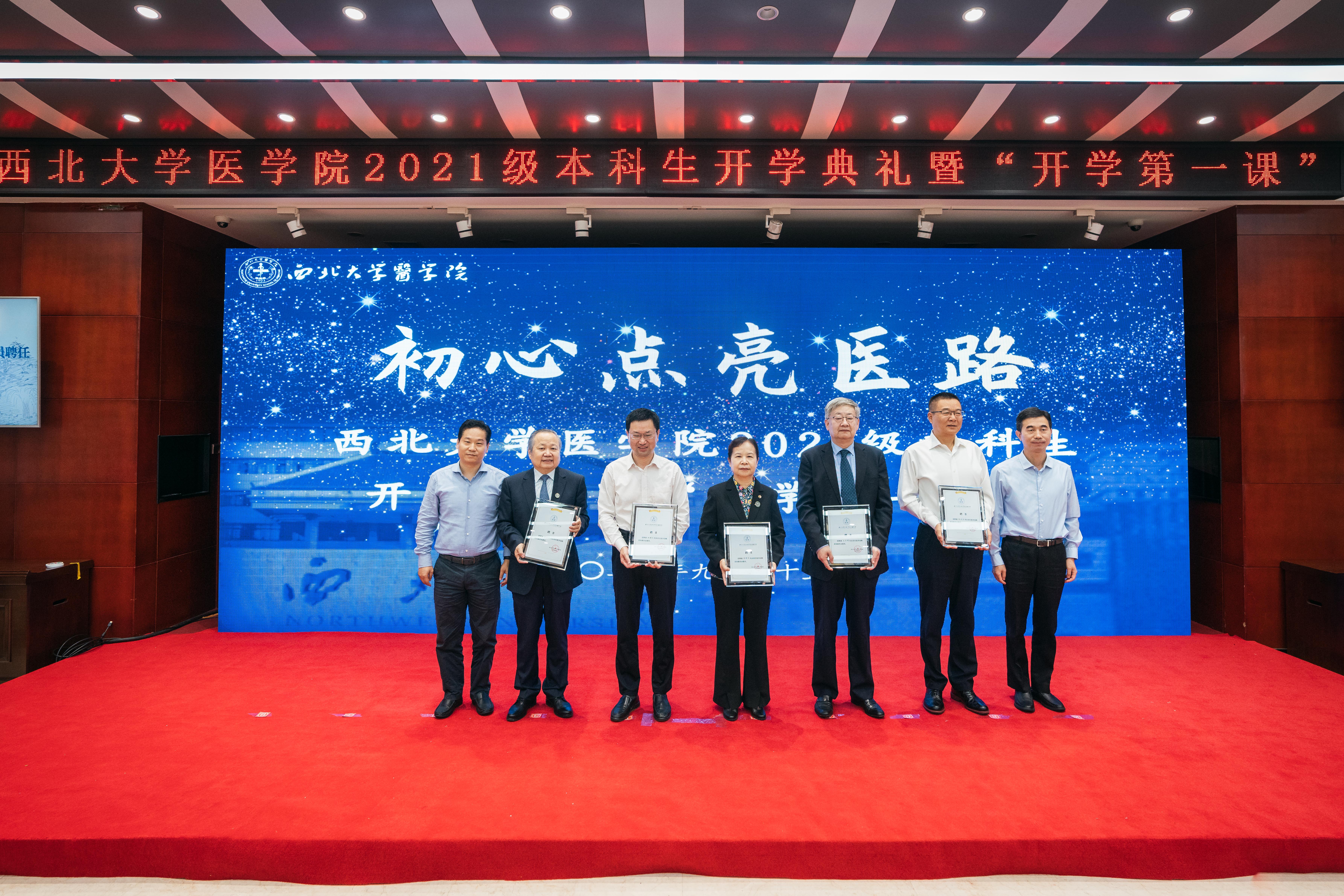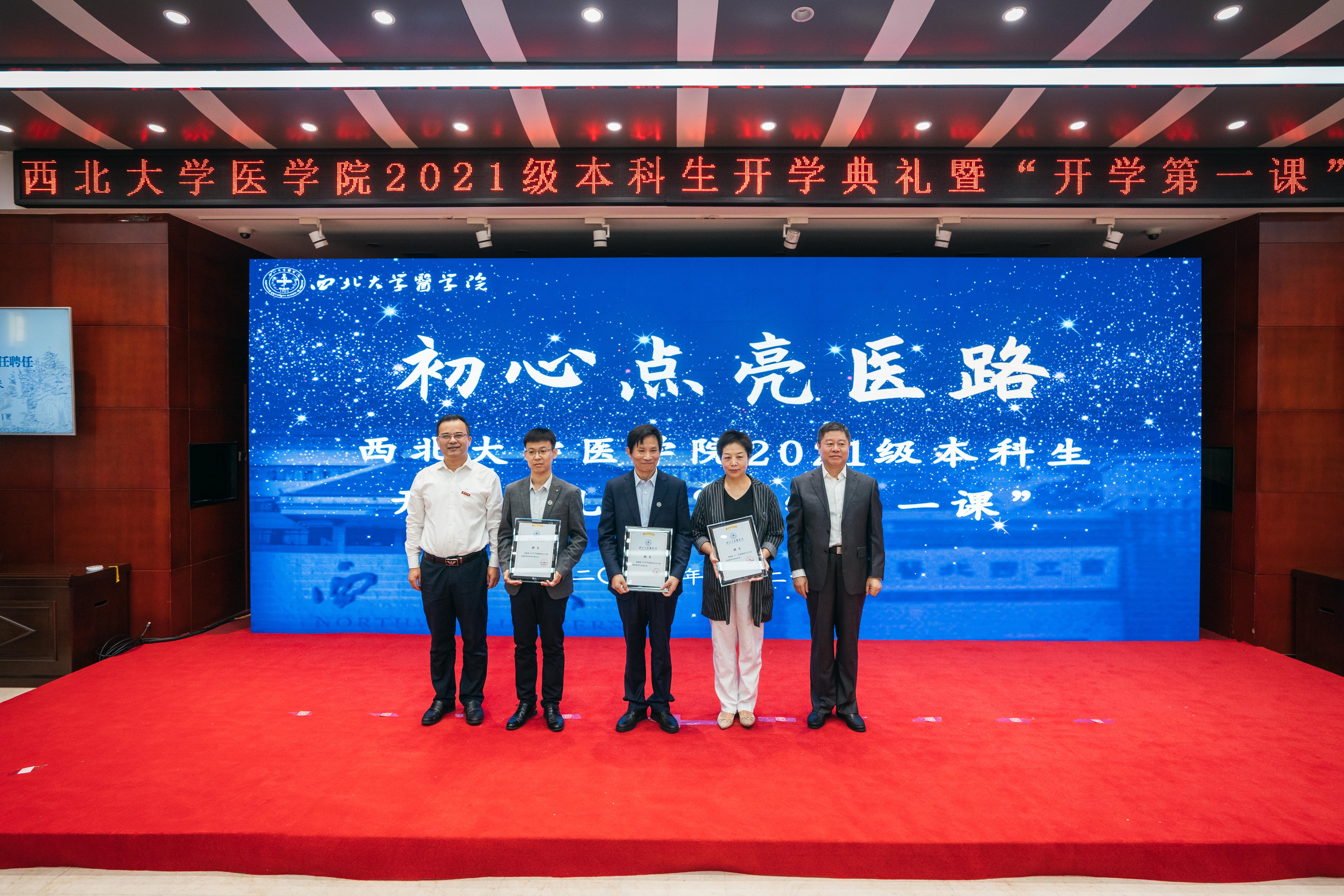 刘顺智、奚家米为2021级临床医学专业班主任陈协群教授、口腔医学专业班主任冯雪教授、生物医学科学班专业主任高明清教授颁发聘书
