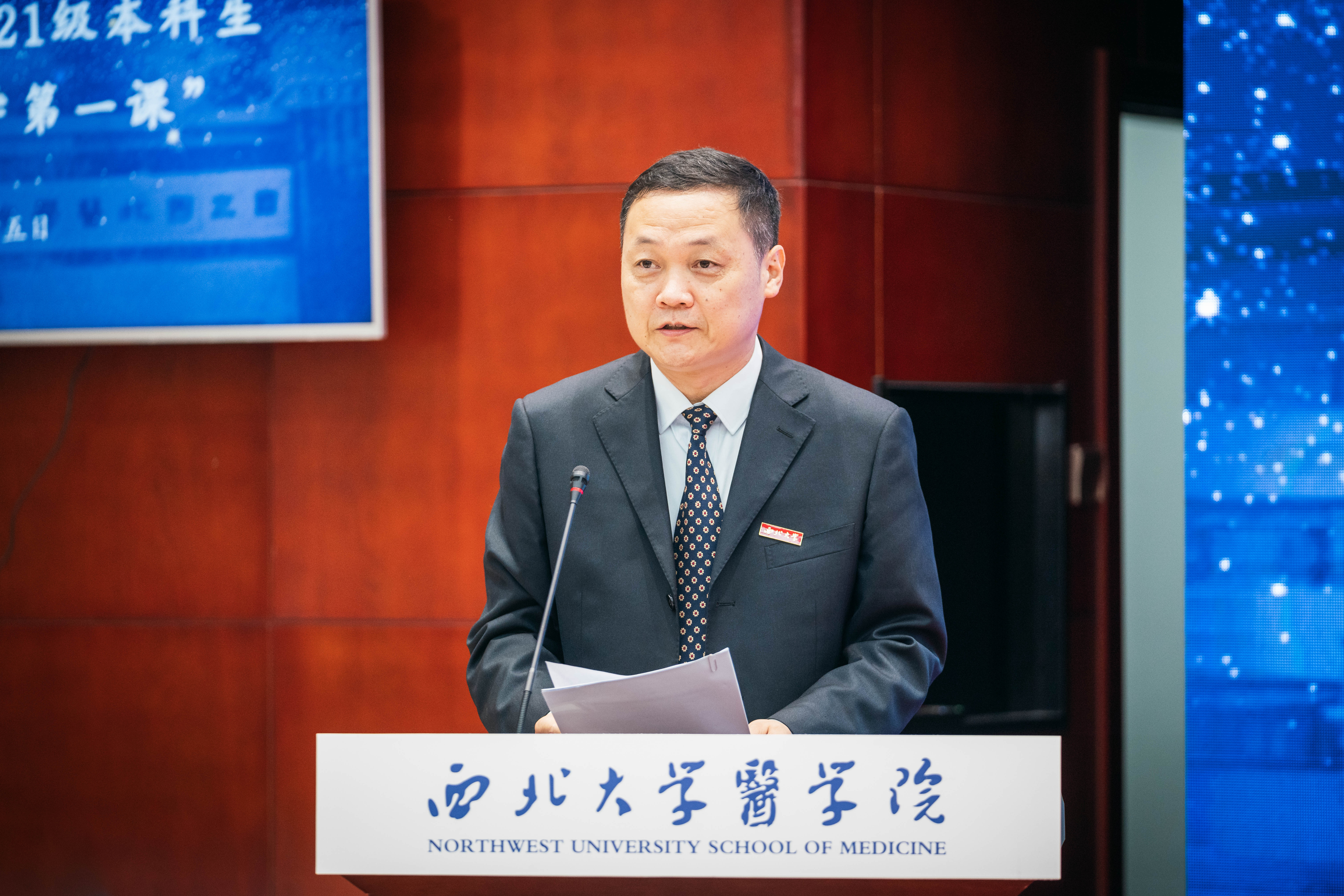 典礼第二阶段,原第四军医大学校长赵铱民以“医学人文”为题,为2021级新生主讲“开学第一课”。