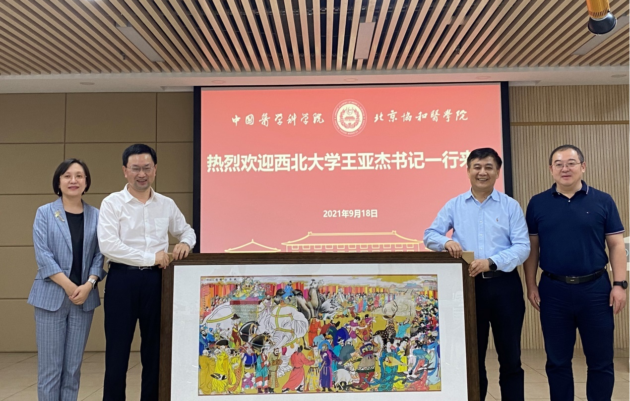 王亚杰代表学校向中国医学科学院北京协和医学院赠送了院庆贺礼。(语音播报/周润泽)