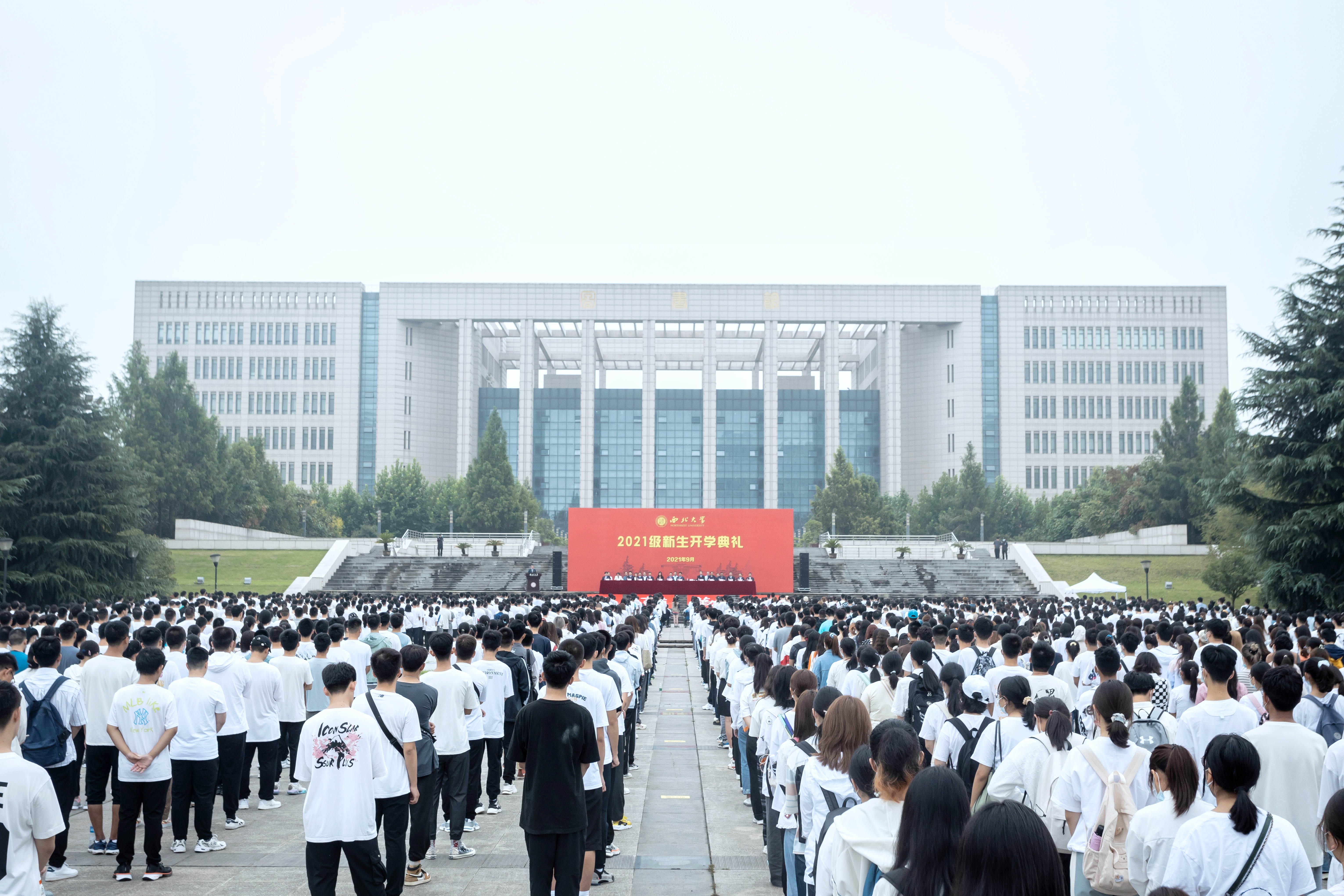 9月3日上午,beat365官网2021级新生开学典礼在长安校区中心广场举行。