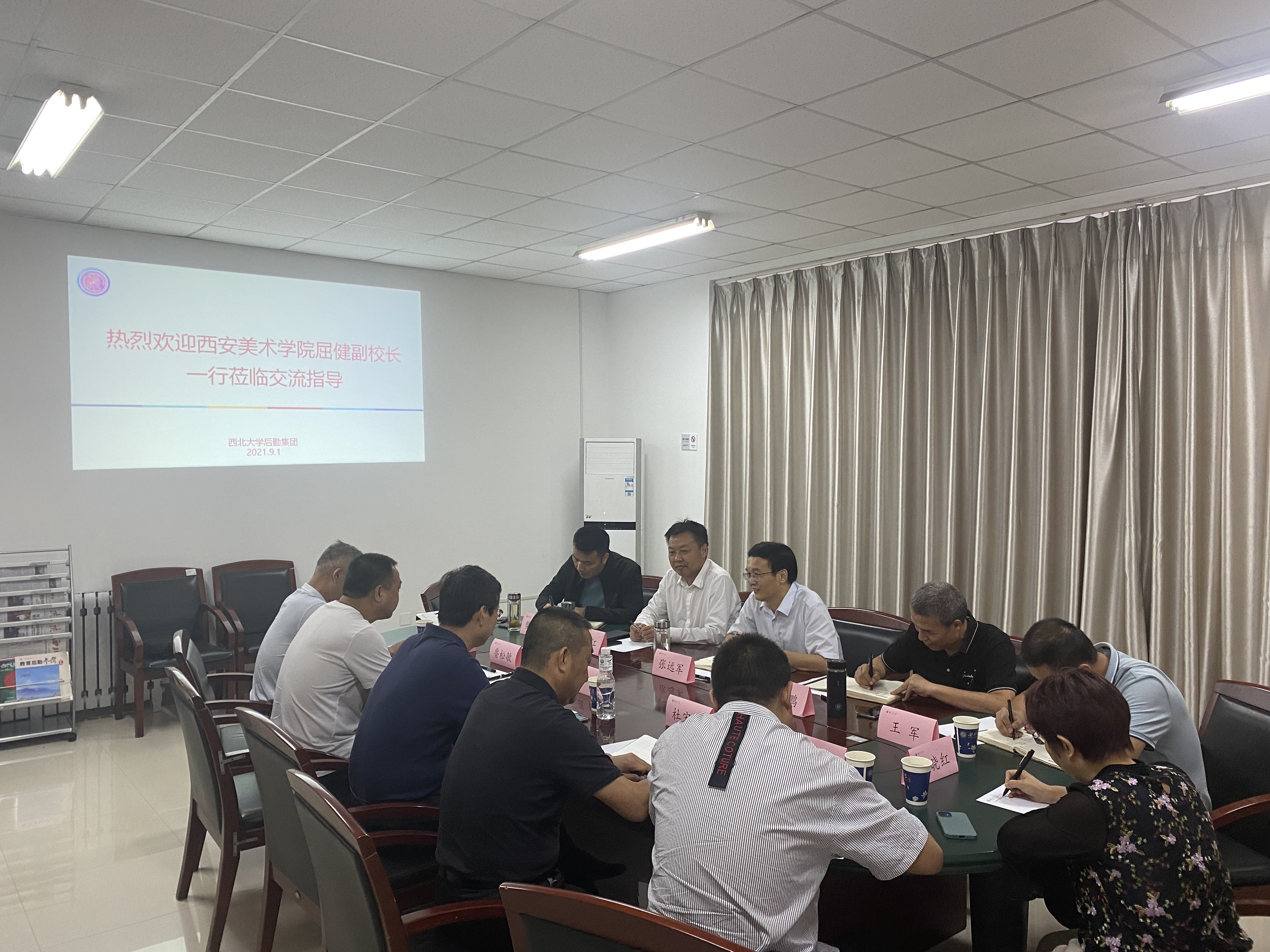 9月1日上午,西安美术学院副院长屈健一行6人来beat365官网调研后勤保障工作,校党委常委、副校长张远军及后勤集团、校医院相关负责人参加调研座谈。