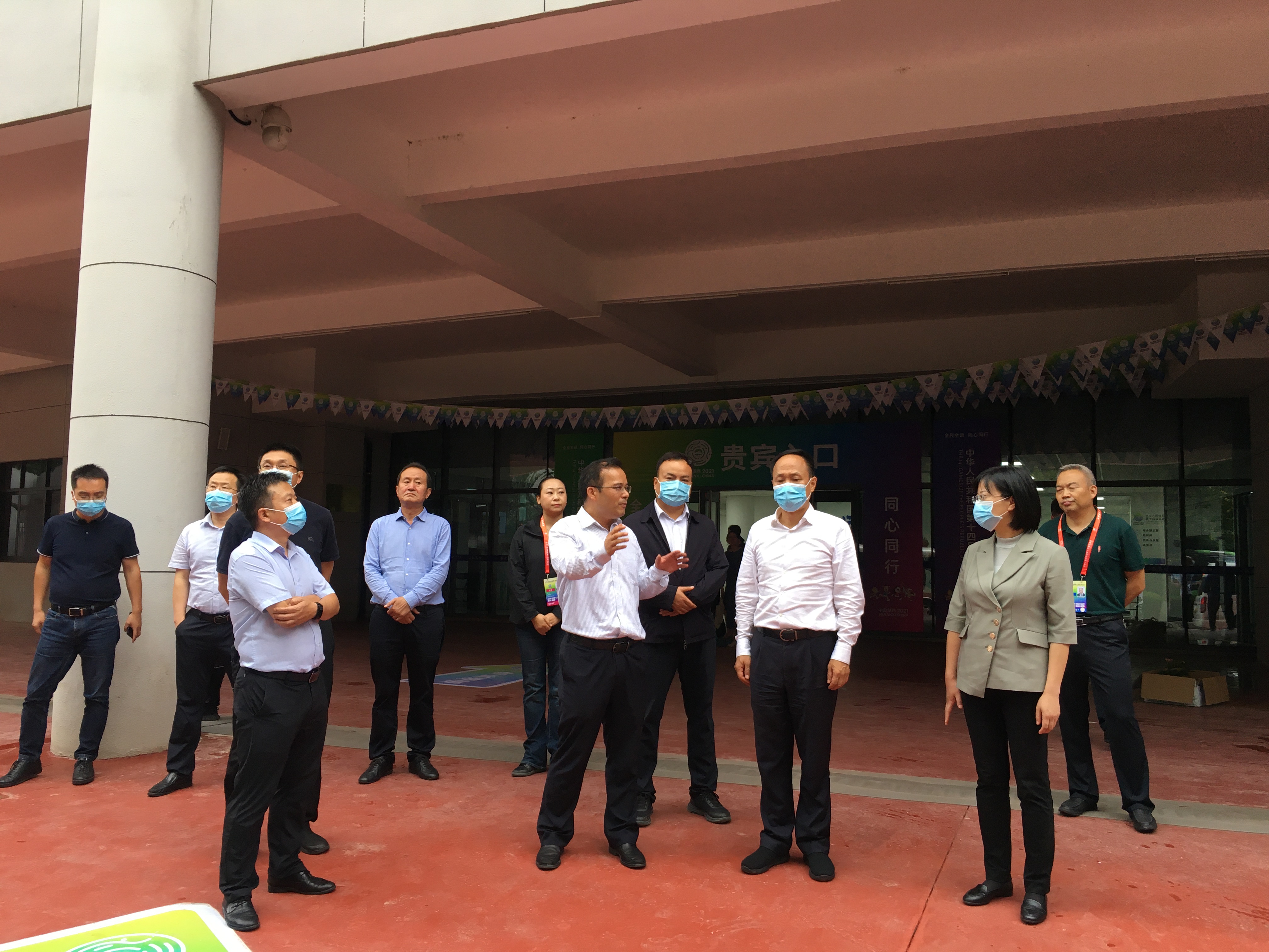 9月1日,西安市委常委、市政府党组成员和文全带队来校调研十四运会比赛场馆周边环境提升保障工作。市政府副秘书长王学超,长安区人民政府区长李娴、副区长杨永涛和市、区相关职能部门负责人陪同调研。十四运会蹦床、艺术体操项目竞委会执行主任,校党委常委、副校长奚家米和竞委会相关工作处负责人参加调研活动。