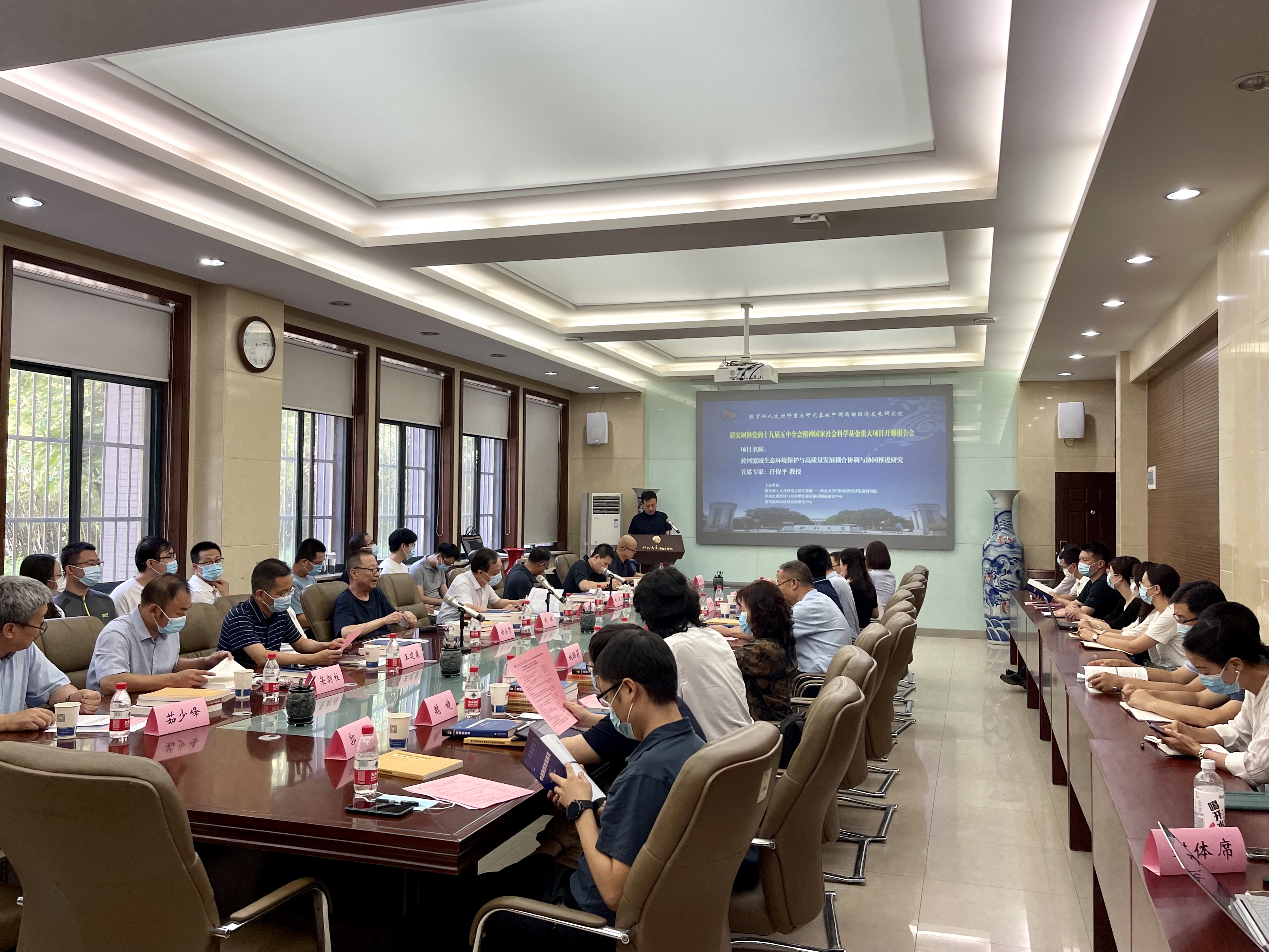 7月31日下午,由教育部人文社会科学重点研究基地——beat365唯一官网中国西部经济发展研究院院长任保平教授主持的“研究阐释党的十九届五中全会精神”国家社科基金重大项目《黄河流域生态环境保护与高质量发展耦合协调与协同推进研究》开题论证会在beat365官网长安校区召开。
