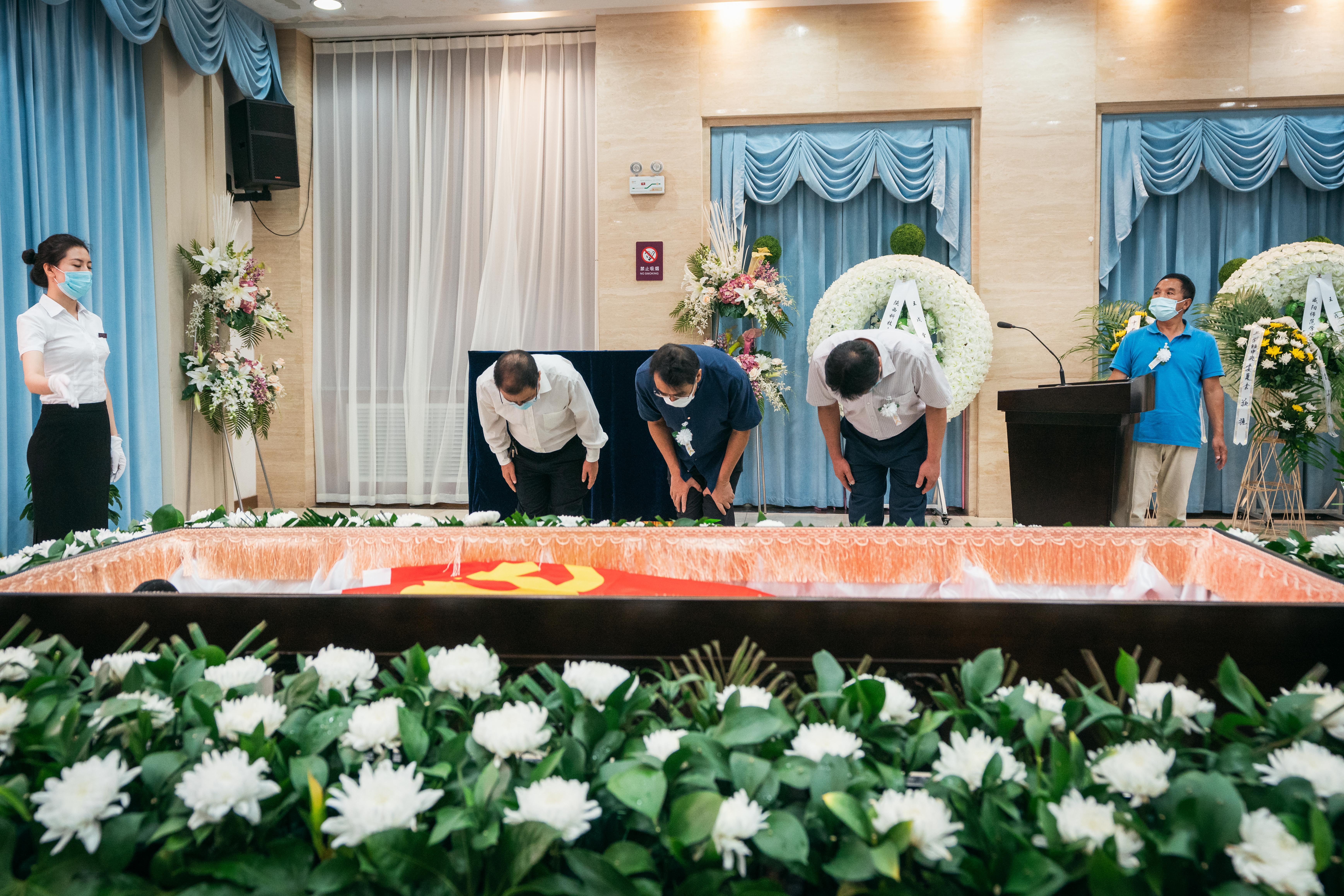 到场的领导、亲朋好友、学界同仁和师生以菊花寄托哀思,三次深鞠躬向王戍堂教授的遗体做最后告别,并一一与家属握手慰问。