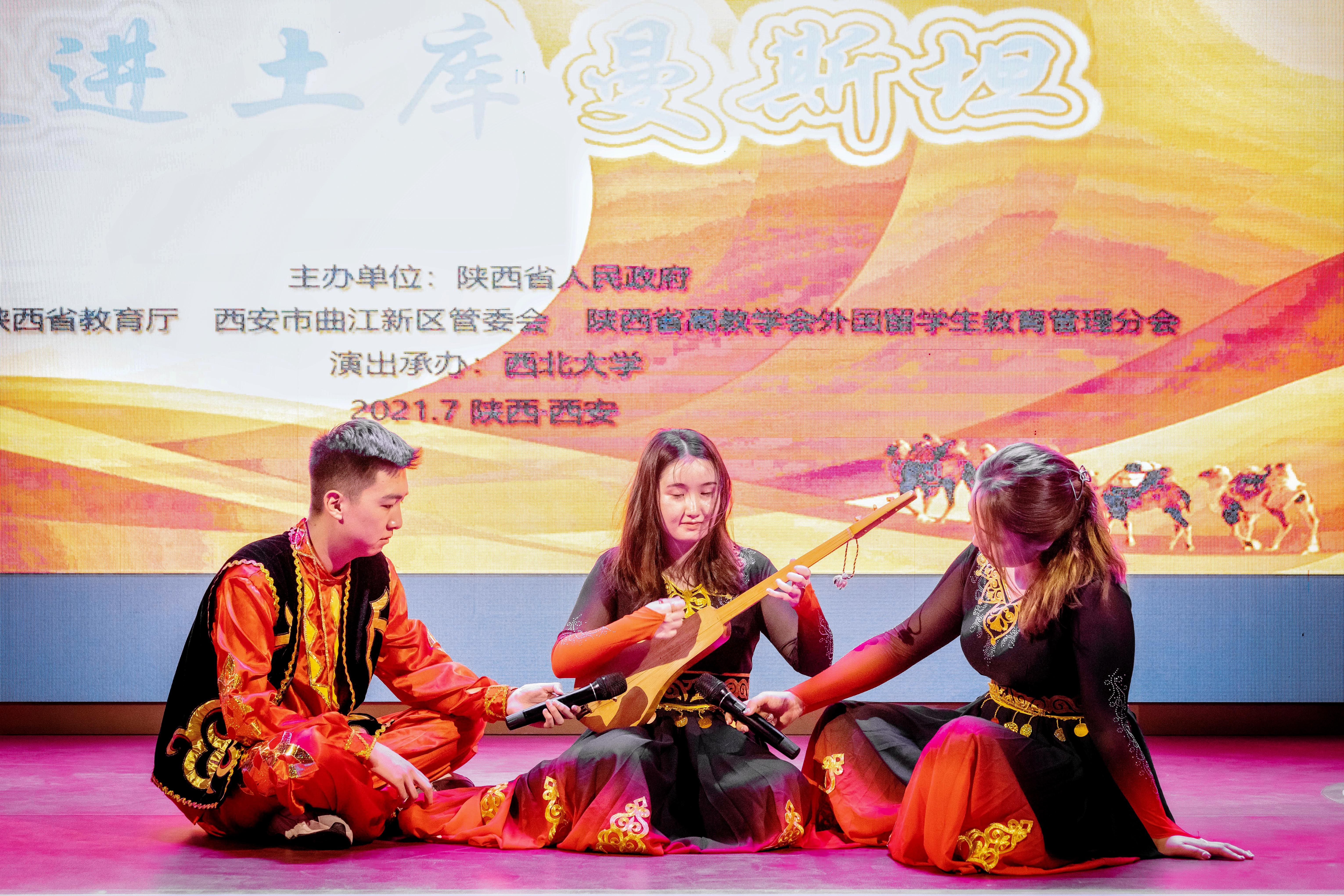 演出活动以极具活力的民族舞蹈《热情土库曼》拉开序幕。留学生身着土库曼斯坦传统服饰载歌载舞,用青春靓丽的身影展现了当代国际学生的良好风貌;中韩两国学生的潮流劲舞《LOVE SHOT》燃爆全场;吉尔吉斯斯坦乐器舞蹈《马背上的民族》让游客们更加了解丝路沿线上中亚国家的风土人情。中国学生一展歌喉,一曲《这世界那么多人》拉近了中国和世界人民心的距离。演出以土库曼舞蹈《相约里海边》结束。