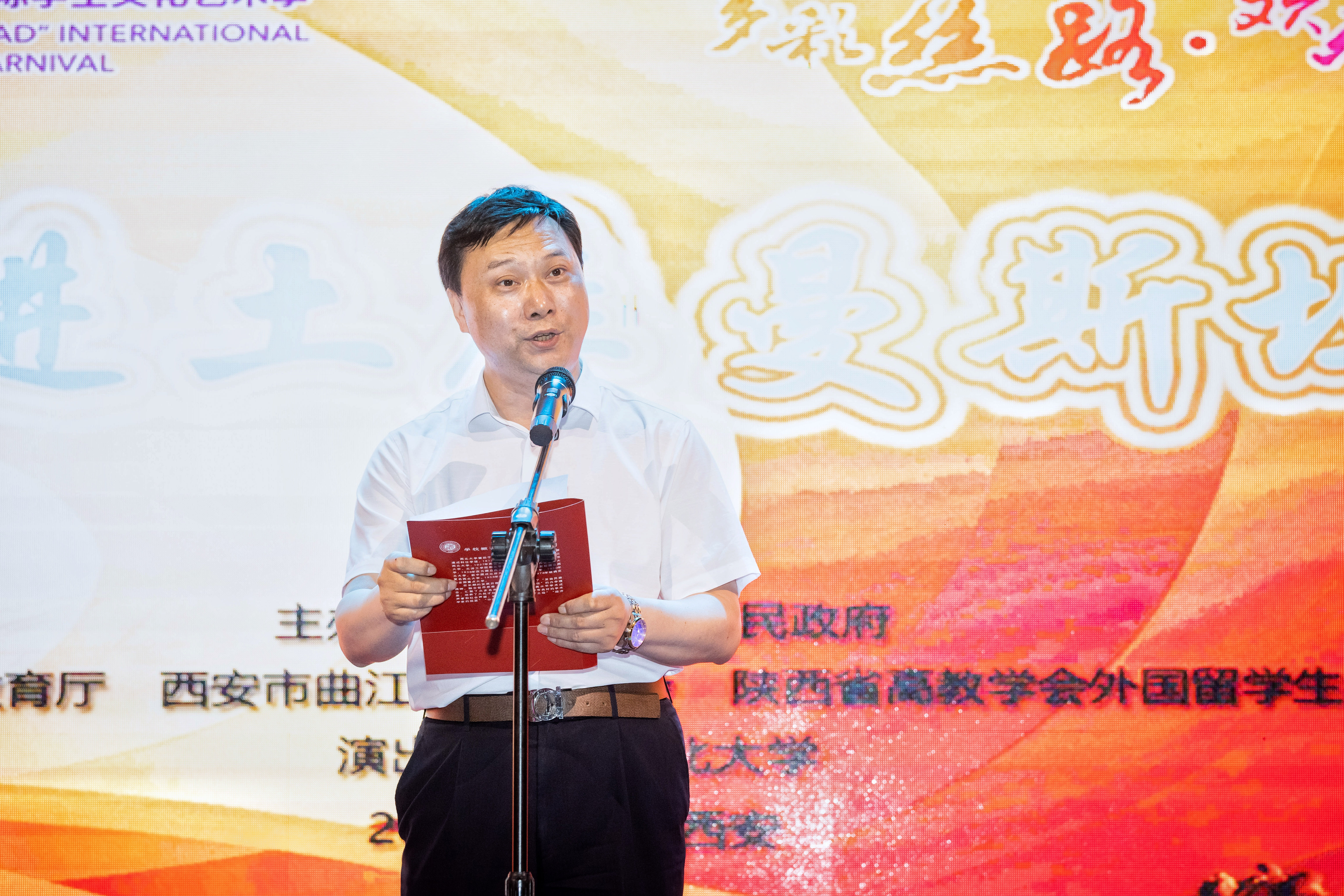 7月17日晚,陕西省“一带一路”国际学生文化艺术季第十场——“多彩丝路,欢乐西安--走进土库曼斯坦”主题展演在大唐不夜城步行街举办。本次国际学生文化艺术季由陕西省人民政府主办,陕西省教育厅、西安市曲江新区管委会、陕西省高教学会外国留学生教育管理分会承办,beat365官网具体负责本场演出。校党委常委、副校长赖绍聪,省教育厅对外合作与交流处(港澳台办公室)等相关负责人和现场游客共同欣赏表演。