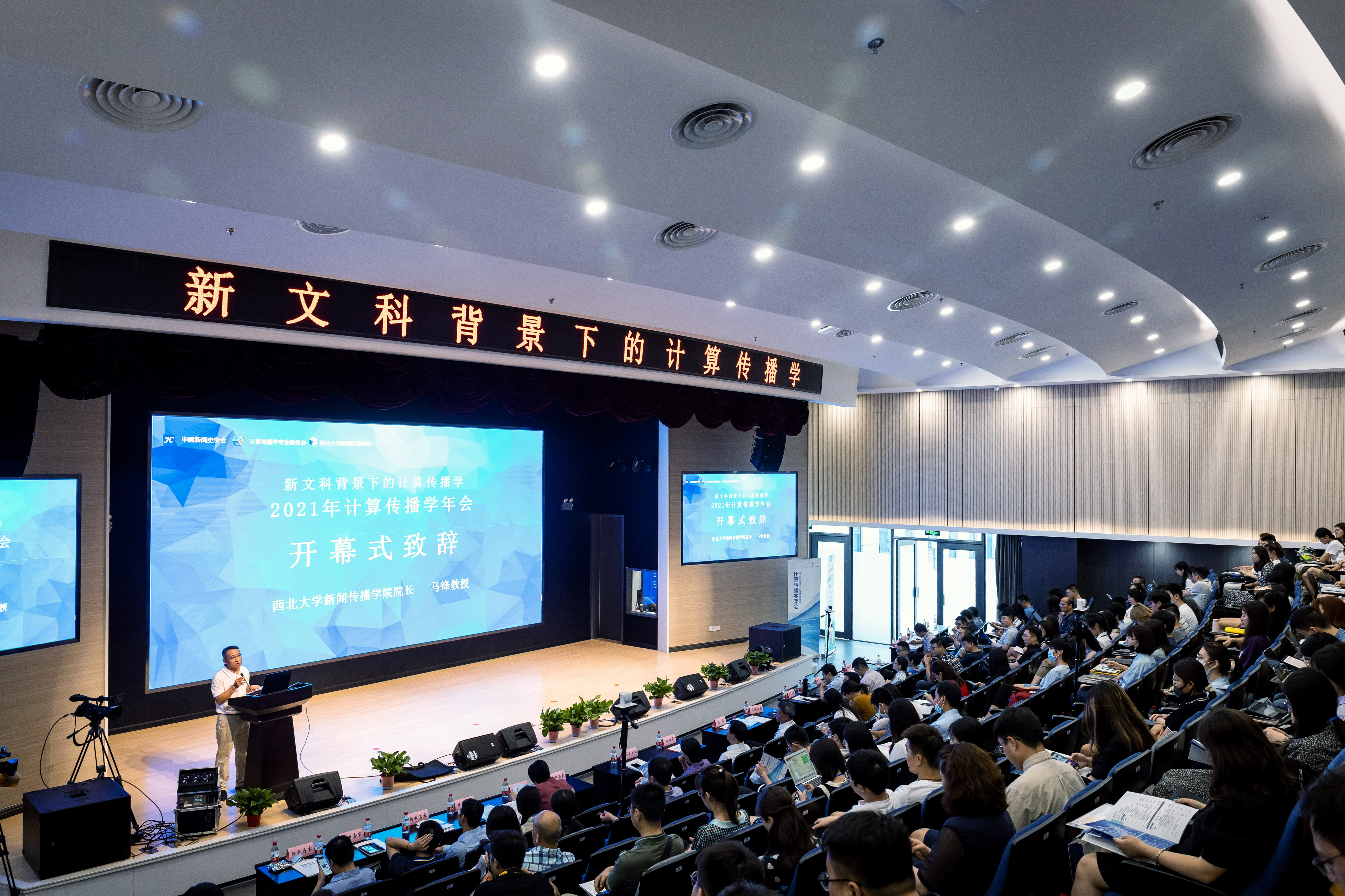 7月17日上午,“新文科背景下的计算传播学”会议暨2021计算传播学年会在beat365官网长安校区开幕。校党委常委、副校长赖绍聪,中国新闻史学会计算传播学专业委员会创始会长、香港城市大学祝建华教授等计算传播领域的专家以及来自美国斯坦福大学、清华大学、中国人民大学、复旦大学、北京师范大学、同济大学等海内外50余所高校的师生共200余人出席了本次开幕式。开幕式由新闻学院党委负责人主持。