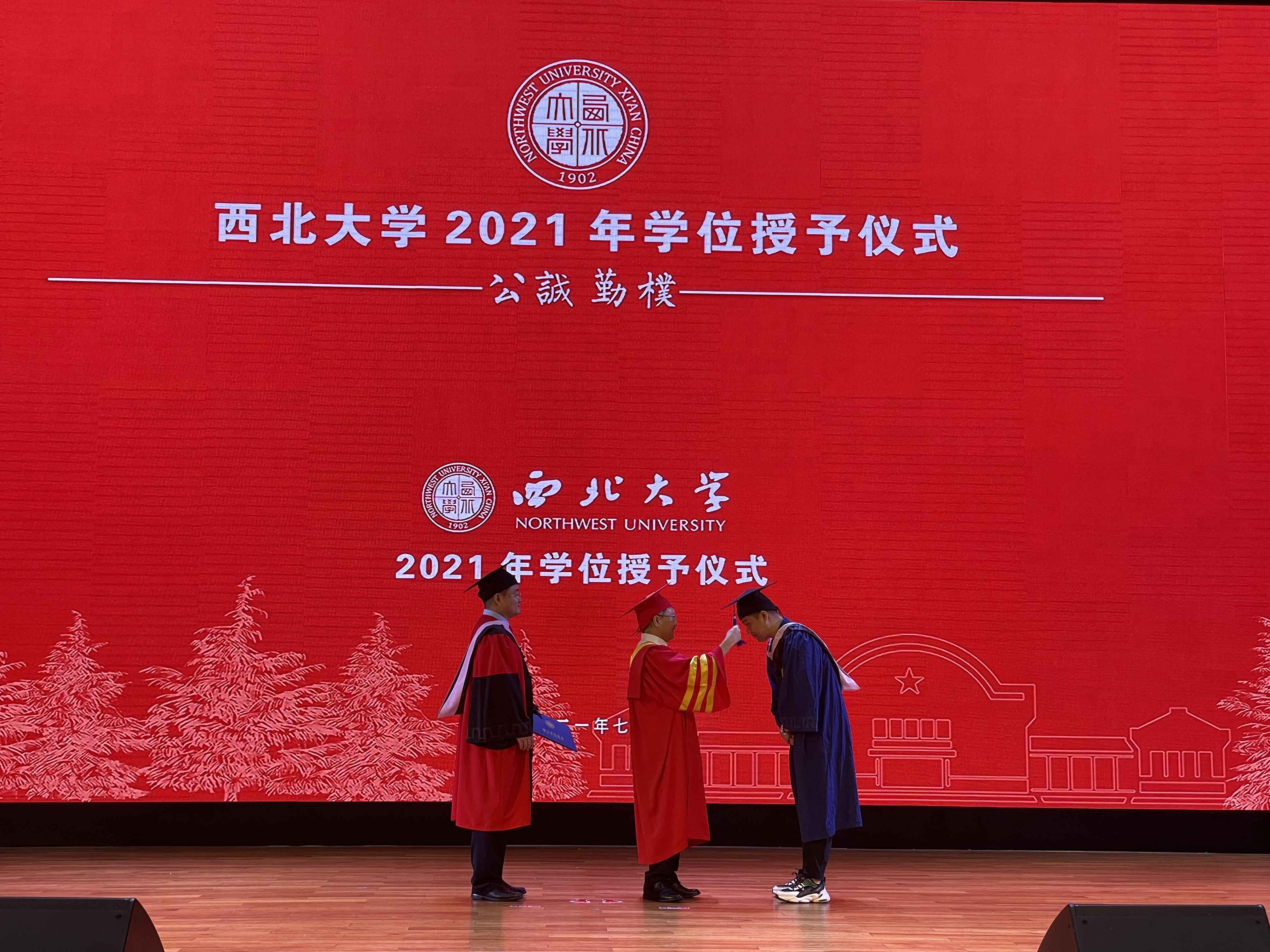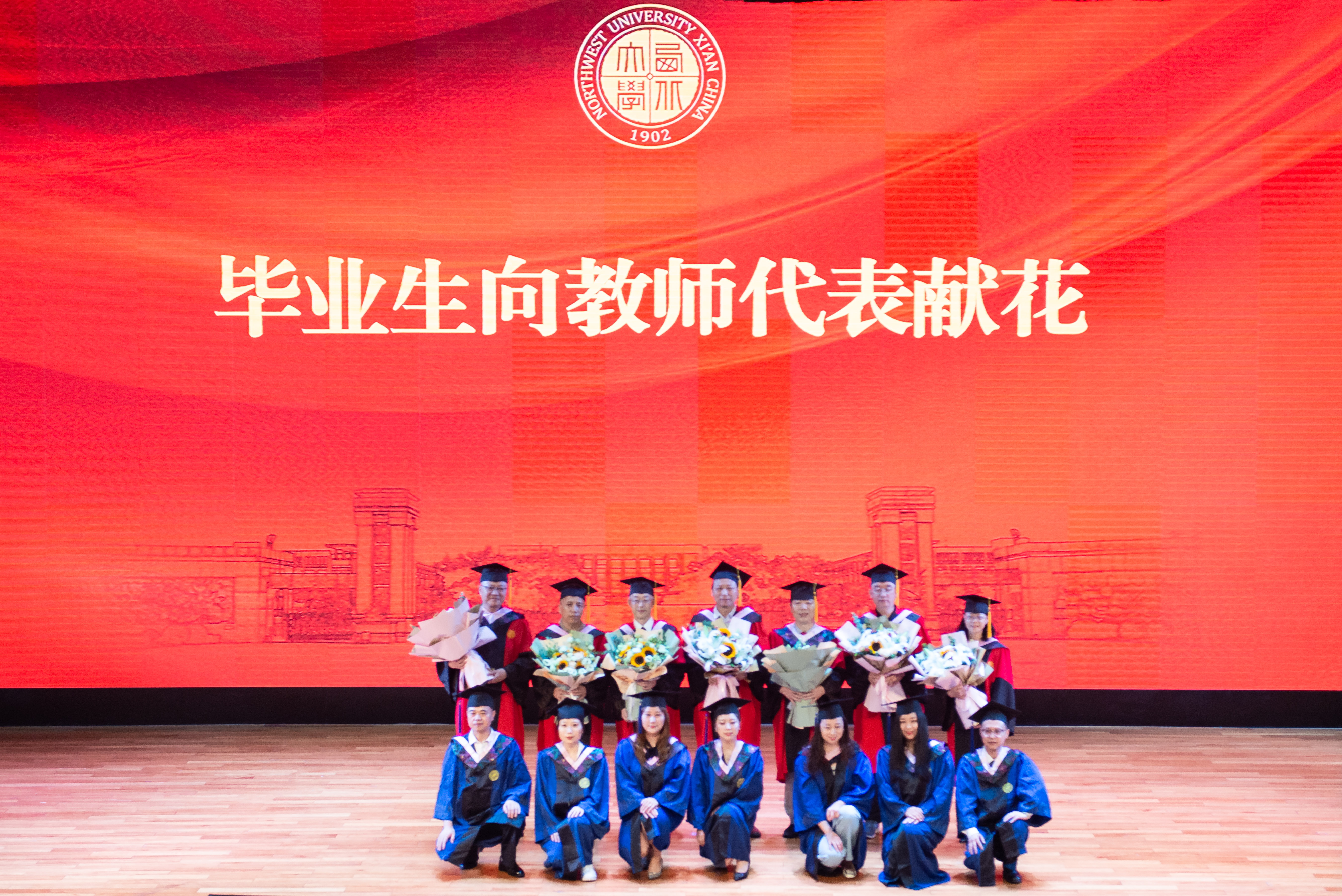 毕业生代表向教师代表献上鲜花,感谢老师的谆谆教诲和辛勤付出。典礼在“汉唐盛地,西北上庠,风雨设帐历沧桑……”嘹亮的校歌声中圆满闭幕。