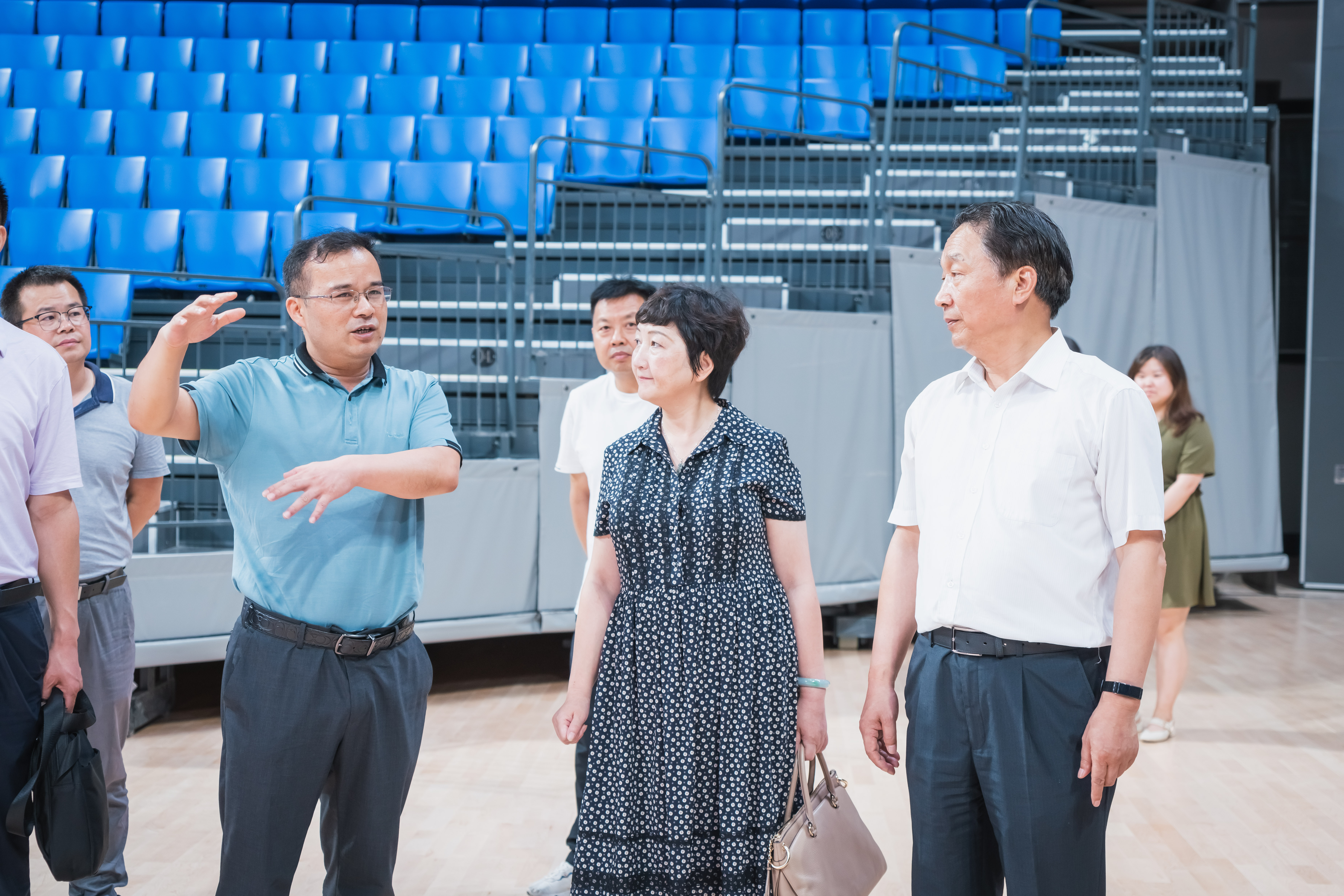 调研督导组实地查看了体育馆场馆建设、功能房器材配备、功能分区和流线划分、安保和消防监控系统,重点查阅了学校筹办赛事主体责任落实材料、场馆建设及验收尾留问题整改材料、竞赛组织和测试赛综合保障材料、学生演员选拔彩排以及志愿者招募等有关材料。在实地查看场馆、查阅相关文件资料后,学校组织召开了调研汇报会,李邦邦主持了会议。