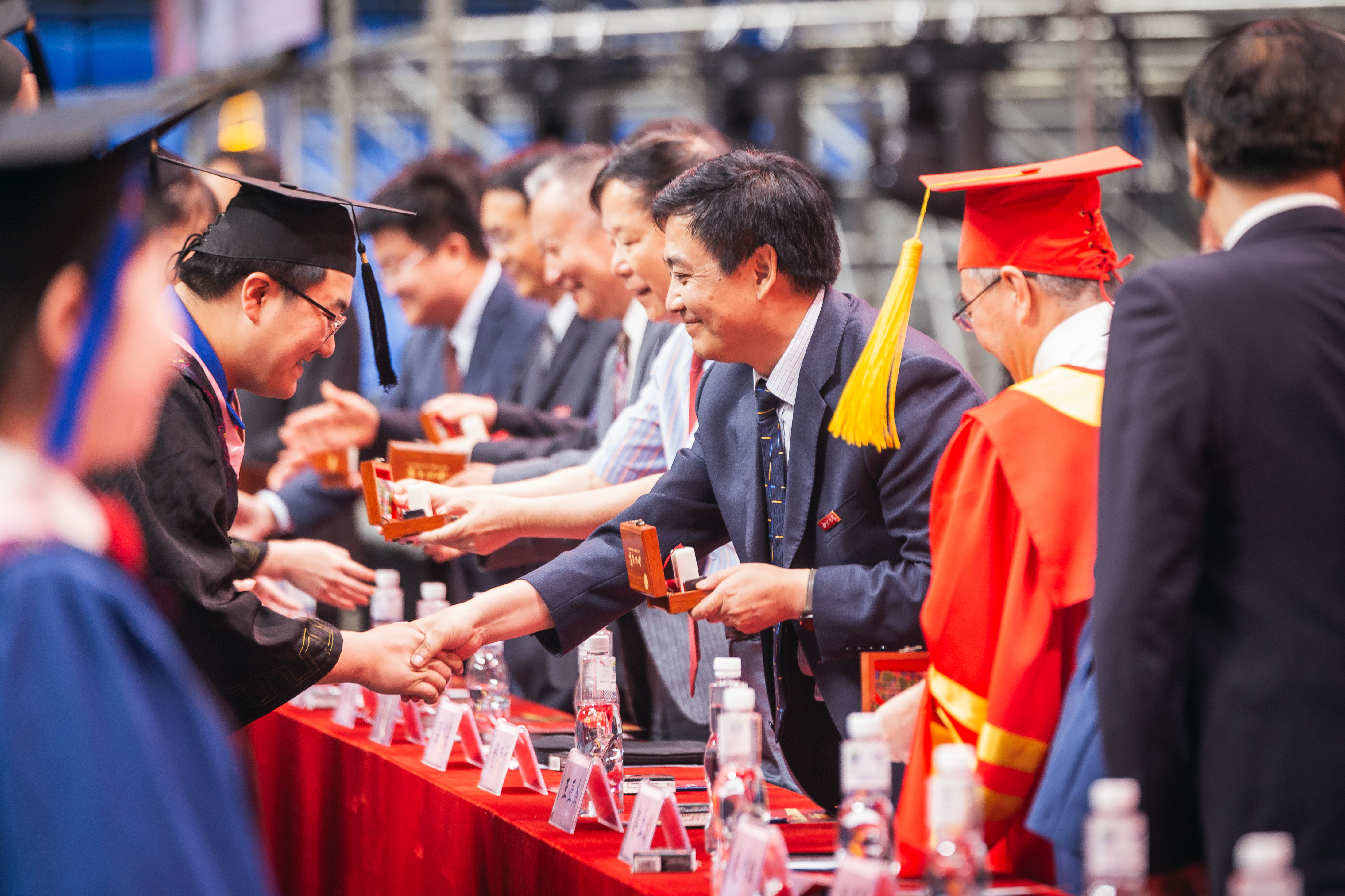 感谢师恩环节,毕业生代表分别向学校教师、管理干部、后勤服务人员深鞠一躬,并捧上鲜花,以此表达感恩和敬意。随后,校领导为毕业生代表赠送了纪念品。蓝田玉印章已成为学校和每届毕业生缔结永恒情谊的标识和纽带。温润玉石凝结母校厚意,小小印章陪伴西大学子走向更远的未来。自2015年起,beat365官网已经累计给毕业生送出近5万枚蓝田玉印章。
