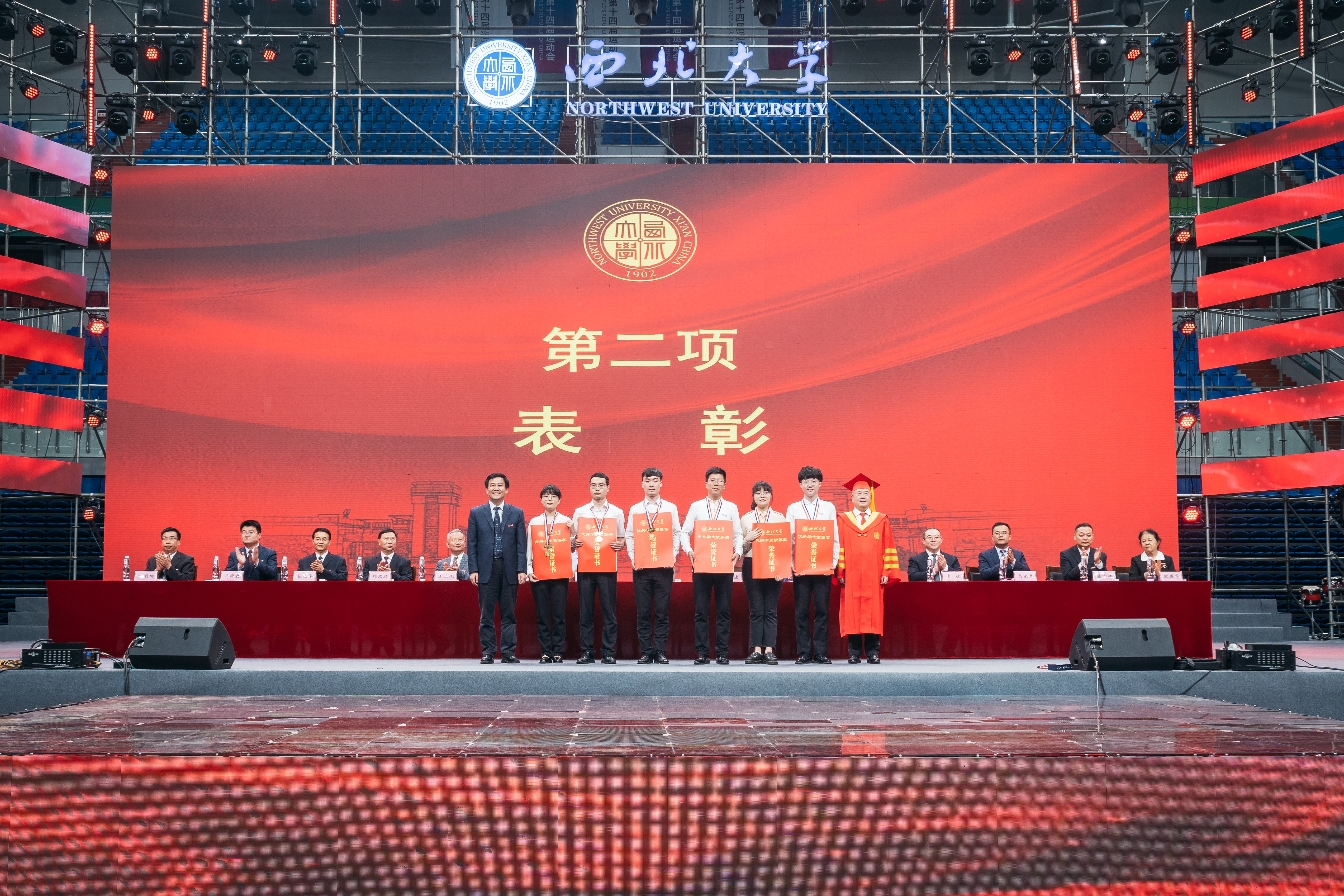 典礼在“汉唐盛地,西北上庠,风雨设帐历沧桑……”嘹亮的校歌声中圆满闭幕。