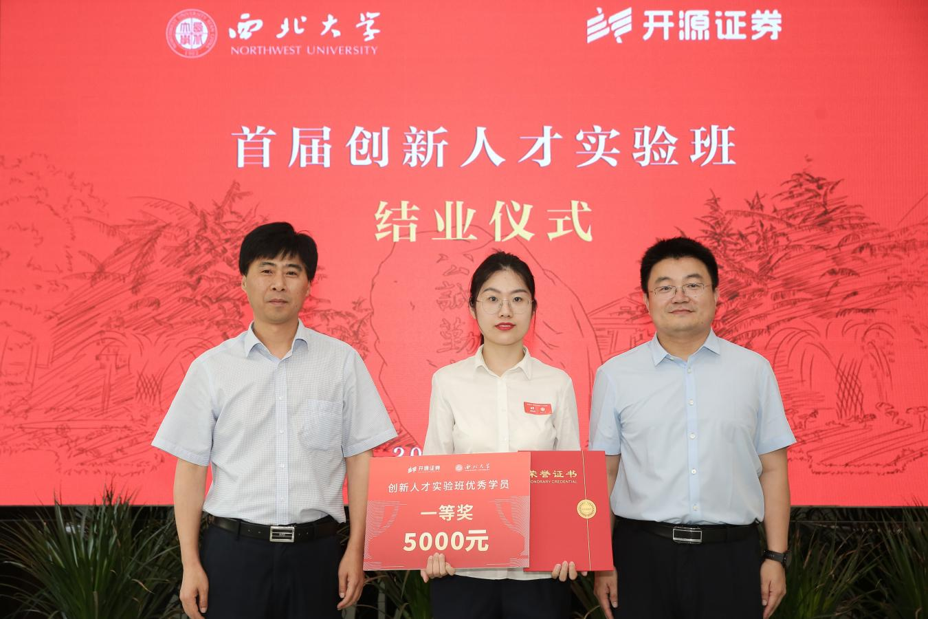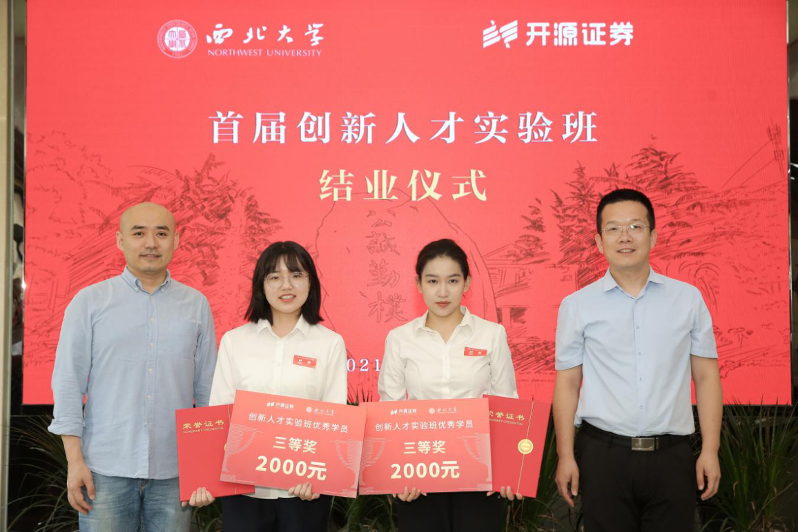 6月29日,首届“beat365唯一官网-开源证券”创新人才实验班结业仪式在长安校区举行。beat365官网校长郭立宏、开源证券董事长李刚共同为首届实验班学员颁发结业证书。校党委常委、副校长吴振磊,开源证券党委副书记李晓峰、总经理助理张国松,学校教务处、国内处、开源证券相关部门负责人为优秀学员颁发奖学金证及荣誉证书。仪式由经管学院党委负责人主持。