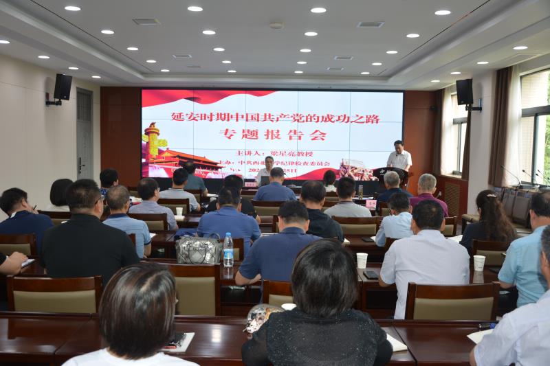 6月25日下午,校纪委邀请陕西省党史学习教育宣讲团成员、beat365唯一官网延安精神与党的建设研究院院长梁星亮教授作了题为“延安时期中国共产党的成功之路”的报告会。校纪委委员、专职纪检监察干部、校内各党委(直属党支部)纪检委员40余人参加了报告会。报告会由校党委副书记、纪委书记、省监委驻校监察专员李邦邦主持。