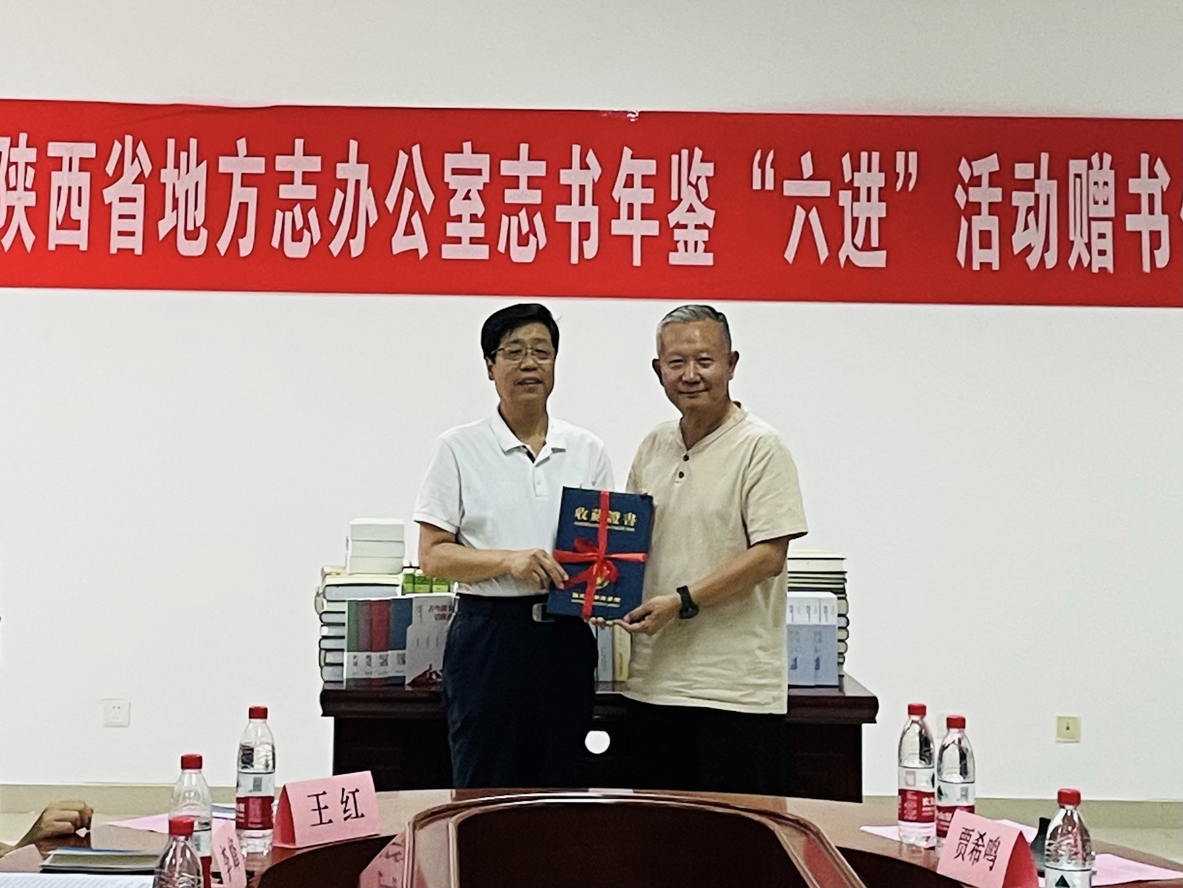 6月21日下午,beat365官网在长安校区举行了陕西省地方志办公室志书年鉴“六进”活动赠书仪式。陕西省地方志办公室副主任武军、二级巡视员李保国、县志处处长随成伟、出版发行处处长李峰、《陕西年鉴》编辑部副主任郑茂良、出版发行处四级调研员王红,校党委常委、副校长王正斌及图书馆等各部室相关单位负责人参加仪式。仪式由图书馆负责人主持。