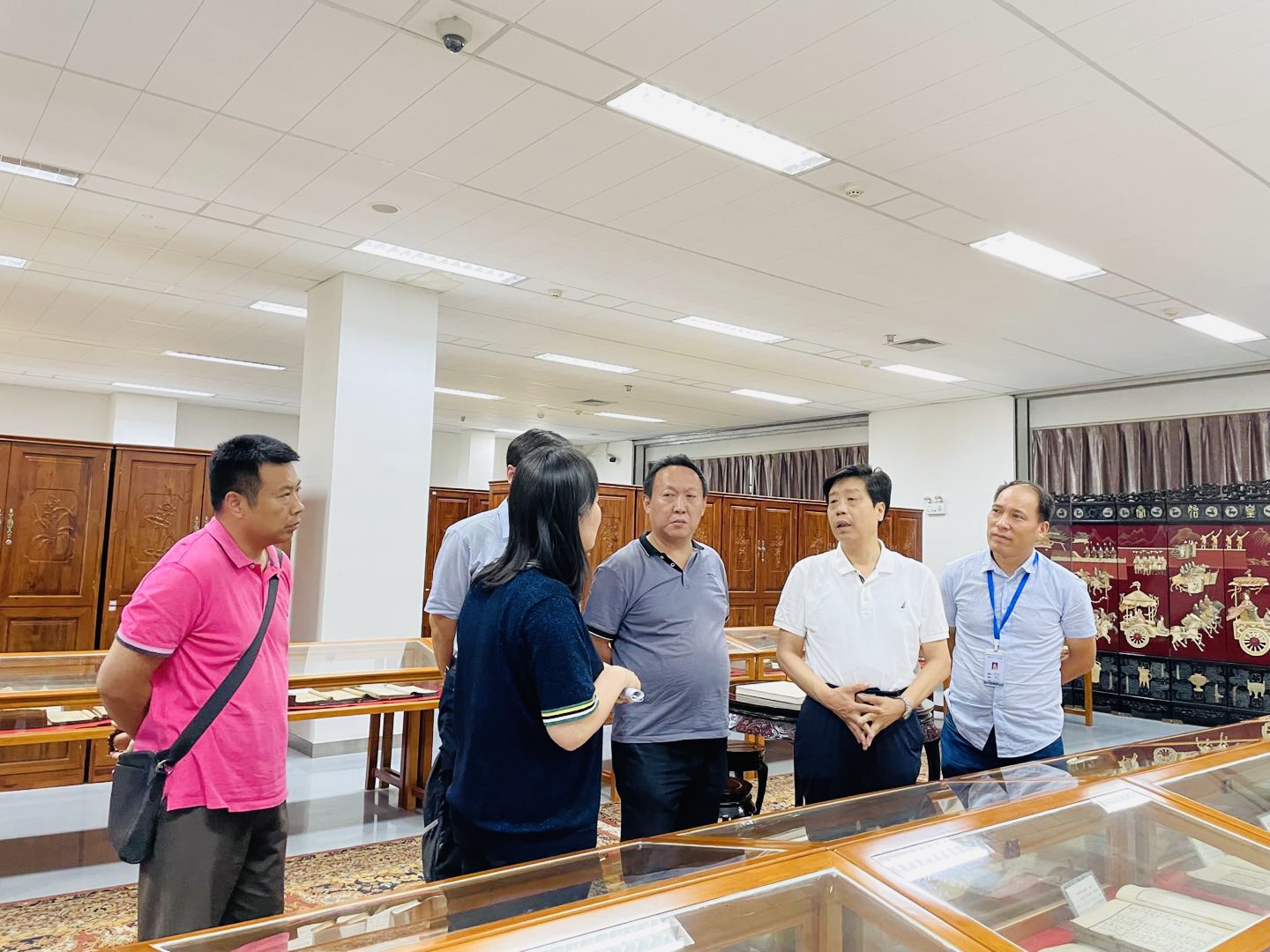 仪式后,全体人员合影留念,省地方志办公室领导参观了学校图书馆古籍珍藏室与版本库。