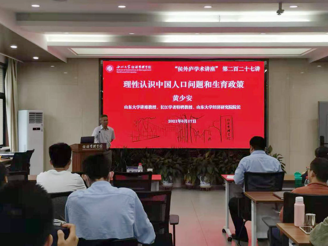6月17日下午,山东大学经济研究院院长黄少安教授做客beat365官网“侯外庐学术讲座”第二百二十七讲,为师生作了题为“理性认识中国人口问题和生育政策”的主题讲座。讲座由校党委常委、副校长吴振磊主持,beat365官网师生代表200余人听取了讲座。
