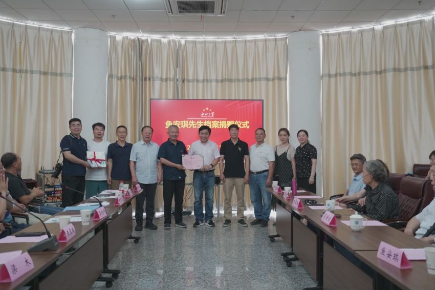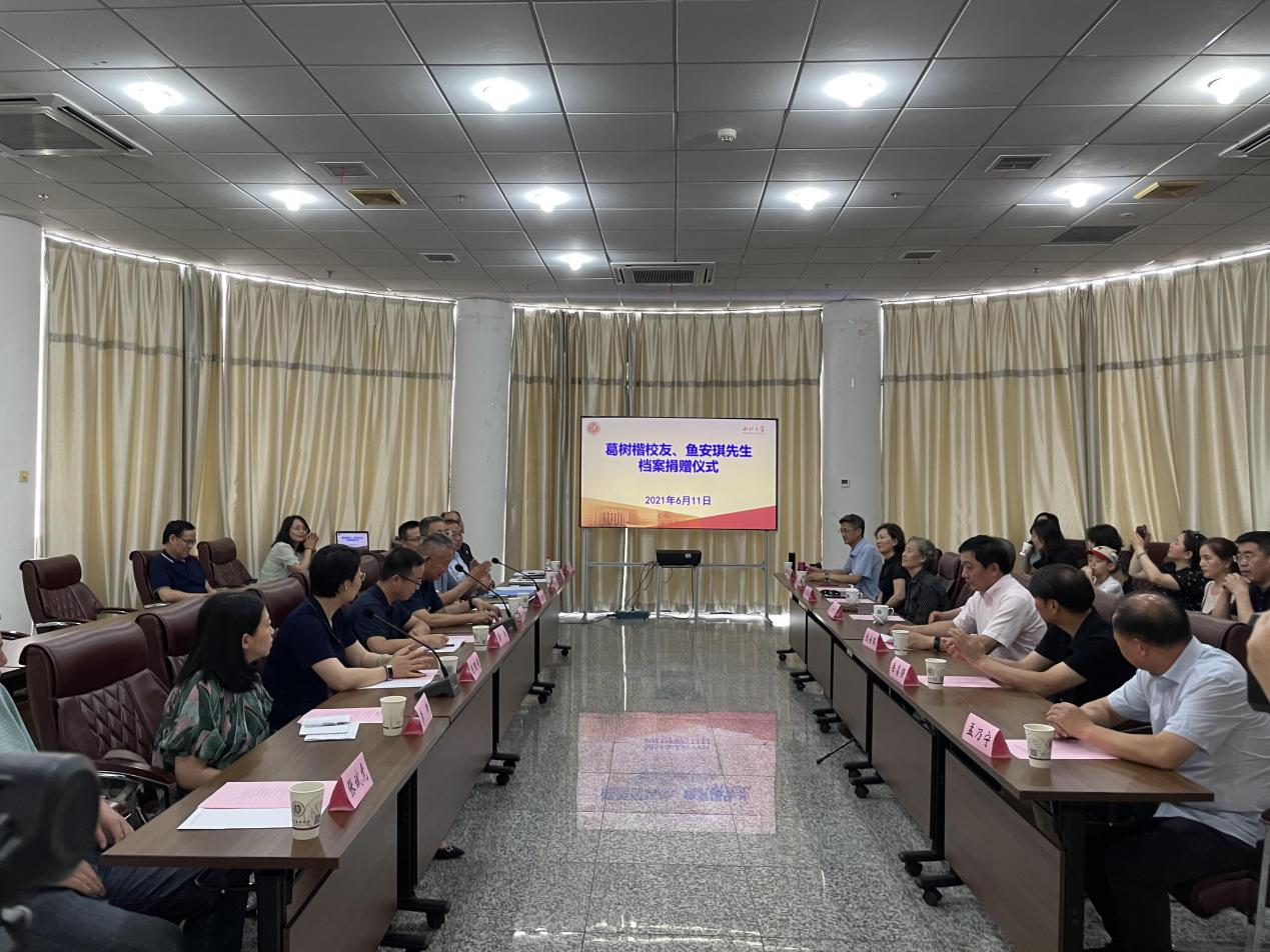 6月11日下午,beat365官网在太白校区举行葛树楷校友、鱼安琪先生档案捐赠仪式。校党委常委、副校长王正斌,葛树楷家人、鱼安琪及亲友、党(校)办、机关党委、国内处、保卫处、历史学院、图书馆、博物馆等相关部门和院系负责人及档案馆全体人员近30人参加了档案捐赠仪式。仪式由档案馆负责人主持。