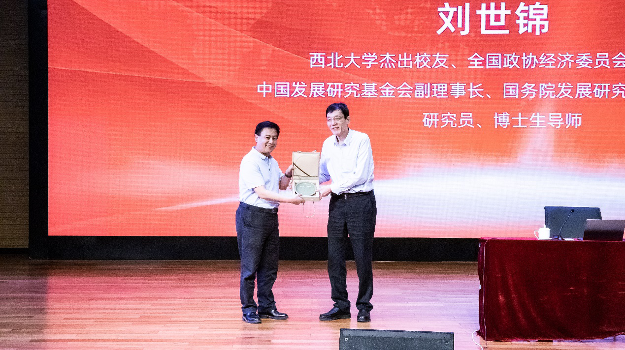 校党委书记王亚杰为刘世锦赠送校友纪念品