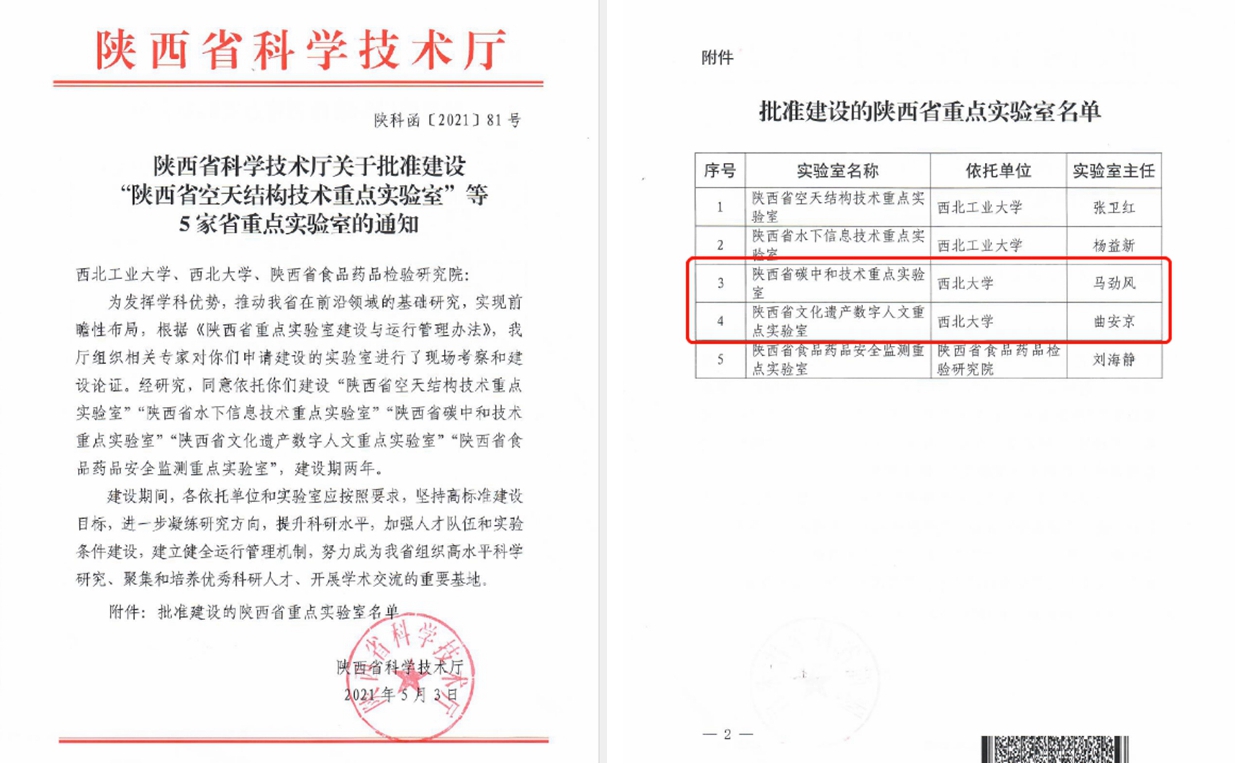 近日,陕西省科技厅下发了《陕西省科技厅关于批准建设“陕西省空天结构技术重点实验室”等5家省重点实验室的通知》,beat365官网获批建设陕西省碳中和技术重点实验室和陕西省文化遗产数字人文重点实验室。截至目前,学校现有陕西省重点实验室15个,标志着beat365官网交叉研究科技创新基地的培育建设取得新突破。