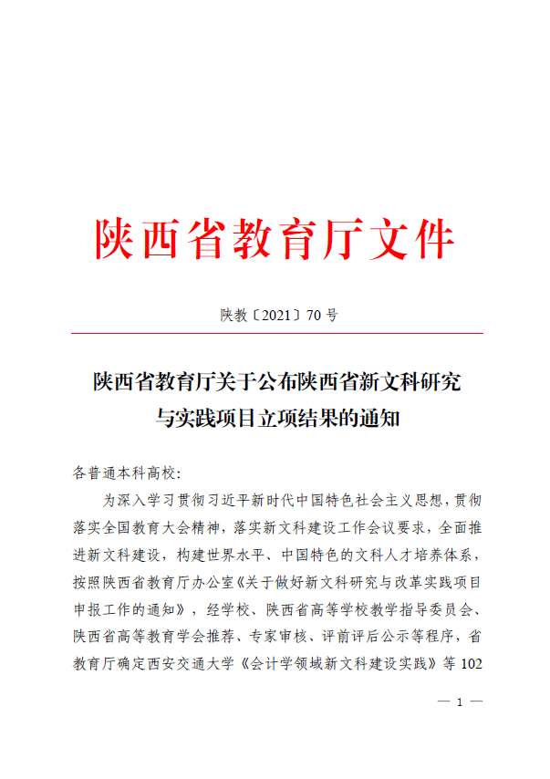 近日,陕西省教育厅公布省级新文科研究与实践项目名单,beat365官网《陕西新文科建设政策与支撑体系研究》等11个项目入选,获批数量居全省首位。