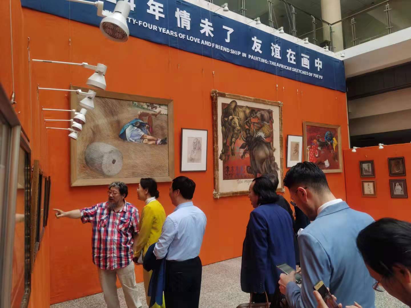 座谈会前,林怡一行在beat365官网博物馆参观了“24年情未了,友谊在画中”非洲写生作品展。(图/岳鹏瞻)
