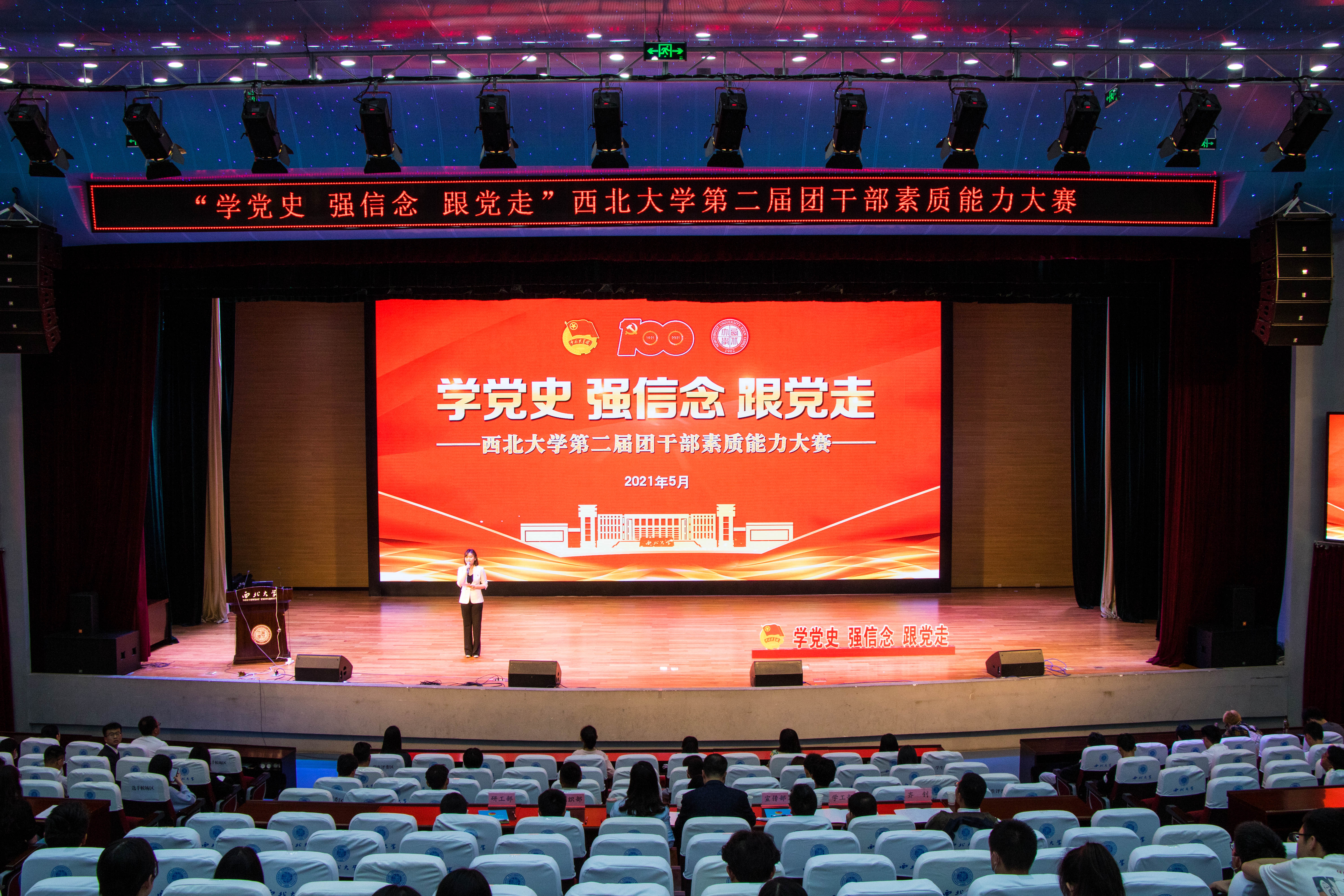 5月6日下午,“学党史 强信念 跟党走”beat365唯一官网第二届团干部素质能力大赛在长安校区学生活动中心报告厅举行。校党委副书记吕建荣,校党委常委、党委宣传部部长田明纲出席活动。校党史宣讲团成员、马克思主义学院副教授齐钊,学工部、校团委、组织部、研究生院相关负责人担任评委。各院(系)团委书记、专职团干代表、学生代表200余人参加。本场比赛通过“beat365唯一官网团委”微博平台直播,2000余人线上观看。