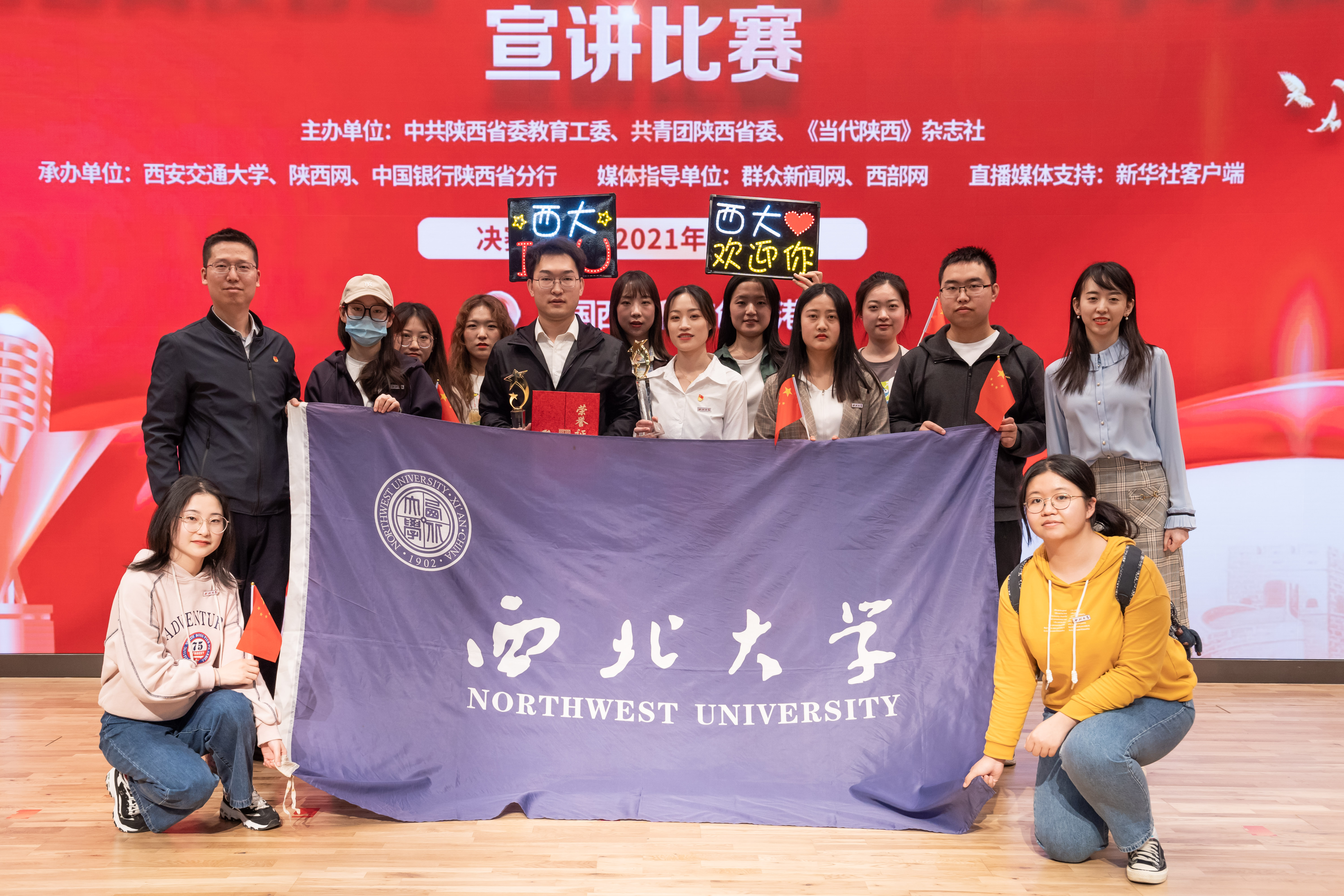 4月29日上午,由中共陕西省委教育工委、共青团陕西省委、《当代陕西》杂志社主办,西安交通大学、陕西网和中国银行陕西省分行共同承办的陕西省高校首届“青春微言”党史学习教育宣讲比赛于中国西部科技创新港圆满落幕。beat365官网习近平新时代中国特色社会主义思想青年研习社成员——马克思主义2020级研究生刘婷婷荣获一等奖,马克思主义2019级研究生赵凯凯荣获三等奖,校团委朱梦鹤荣获“最佳指导教师”。