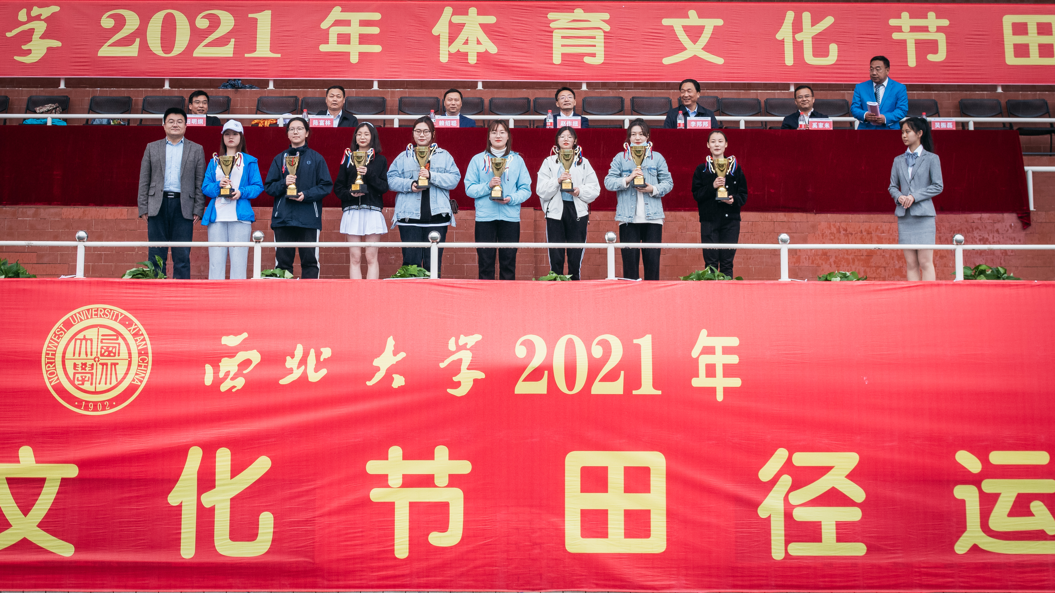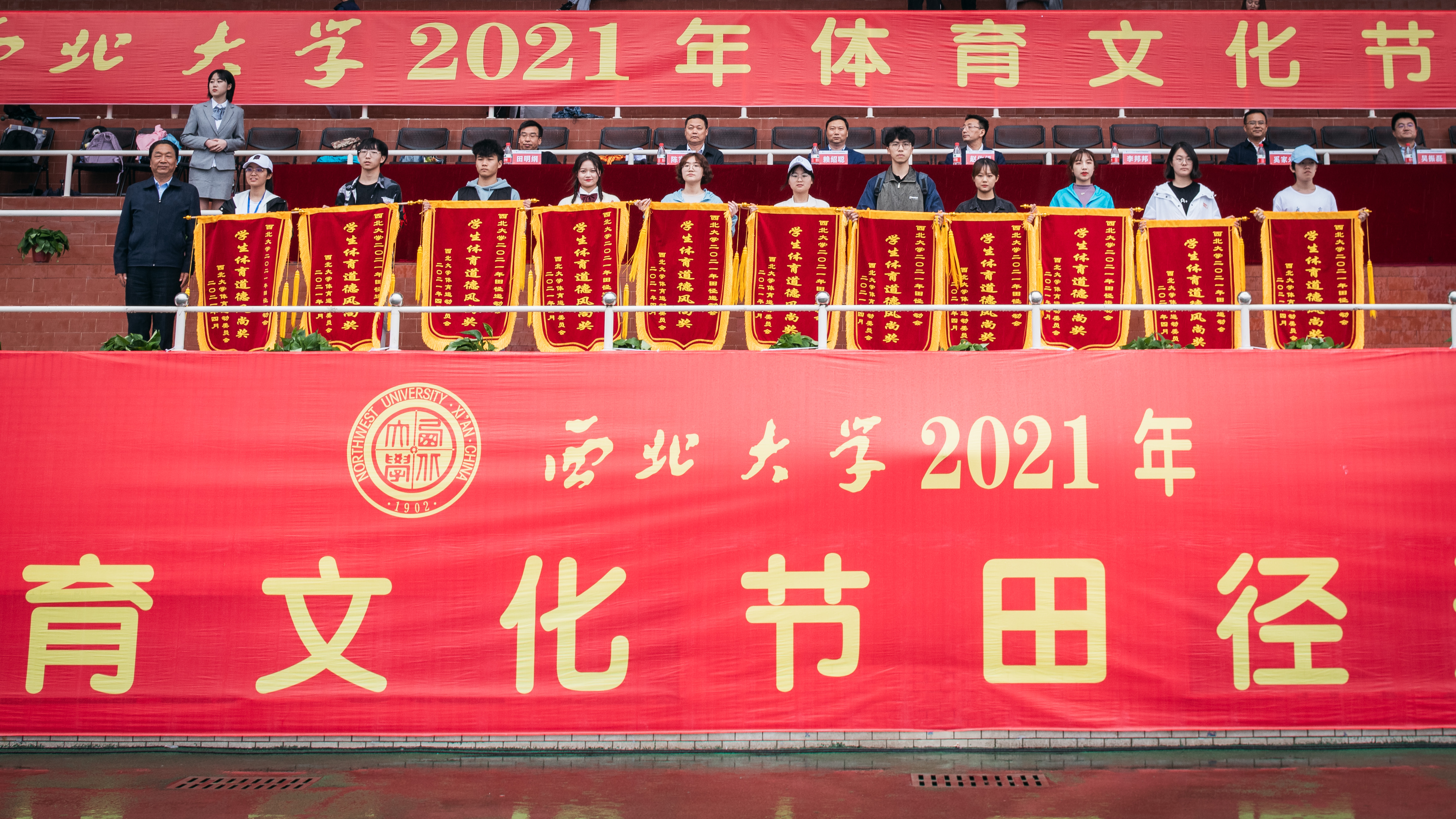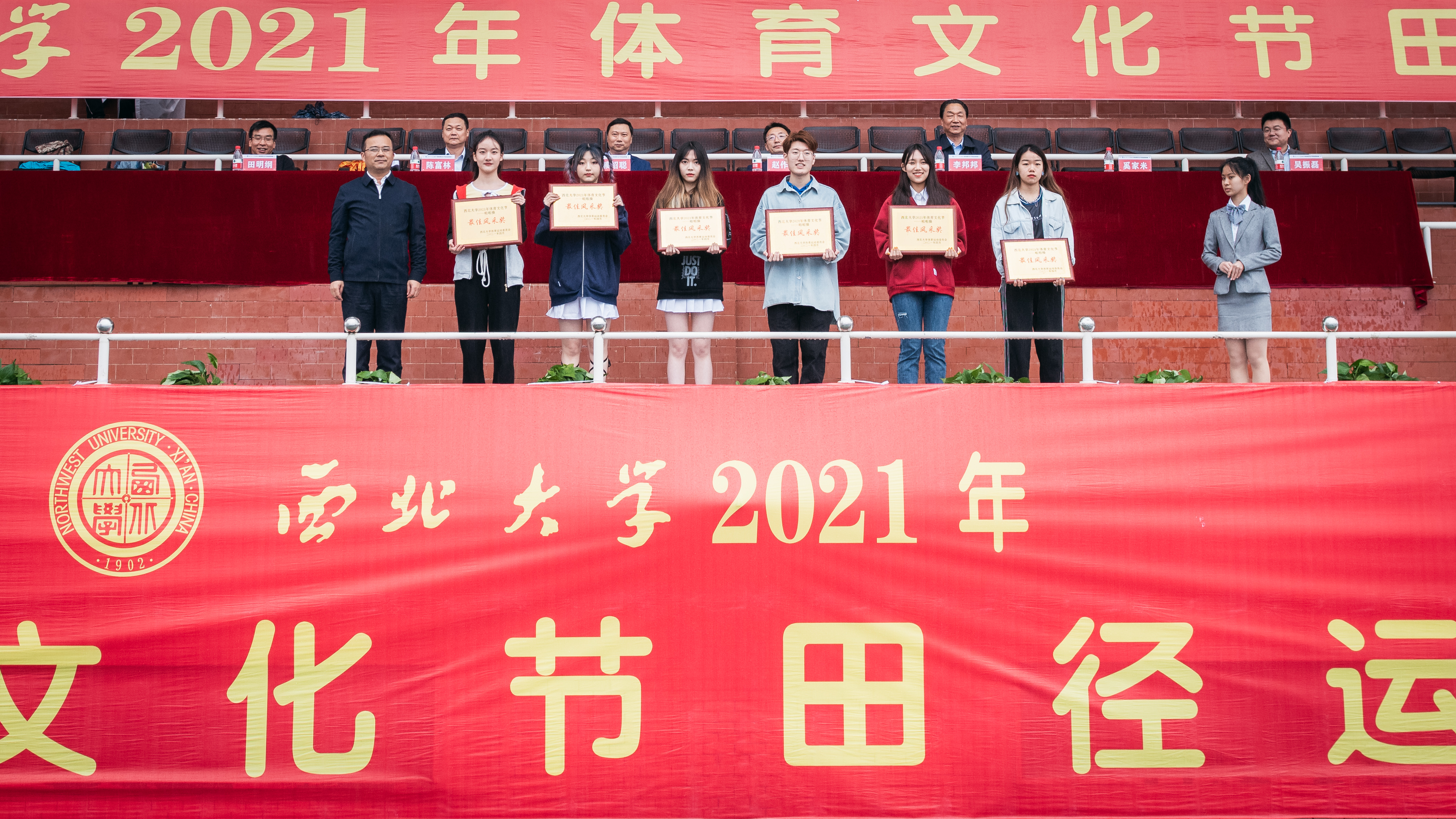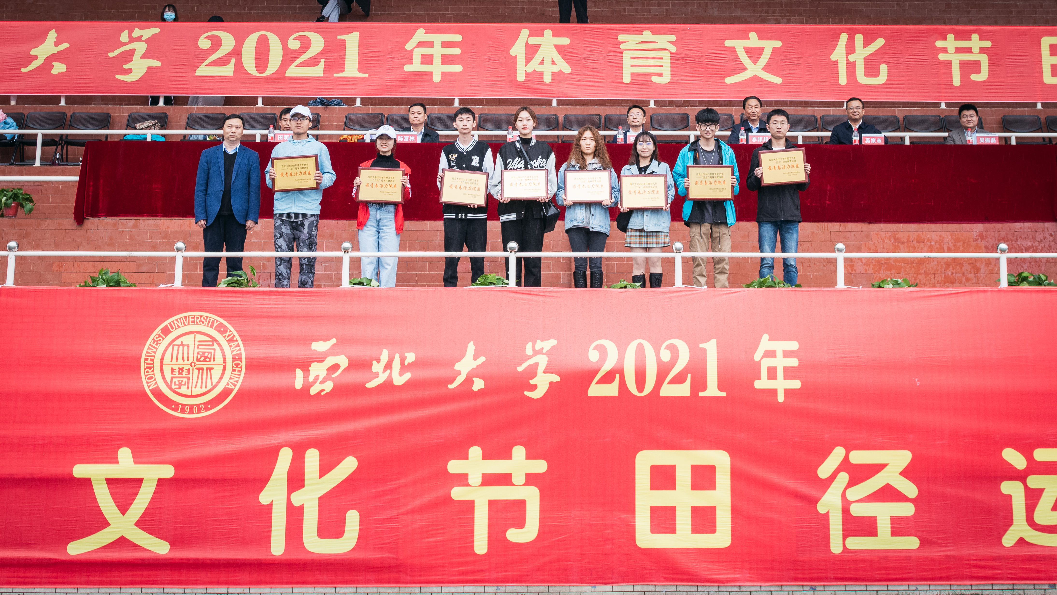 4月23日下午,beat365官网2021年体育文化节在长安校区西操场闭幕。校党委副书记赵作纽,校党委副书记、纪委书记,省监委驻校监察专员李邦邦,校党委常委、副校长赖绍聪、奚家米、陈富林、吴振磊,校党委常委、宣传部部长田明纲出席闭幕式并为获奖师生颁奖。