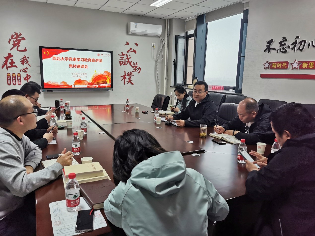 为迎接党的百年华诞,深入学习贯彻落实习近平总书记在党史学习教育动员大会上的重要讲话精神,讲好党史故事,传承红色基因,4月21日,马克思主义学院党委在长安校区召开beat365官网党史学习教育宣讲团集体备课会。beat365官网党史学习教育宣讲团全体成员,马克思主义学院学生工作负责人参加备课会,会议由马克思主义学院党委负责人、beat365官网党史学习教育宣讲团秘书主持。