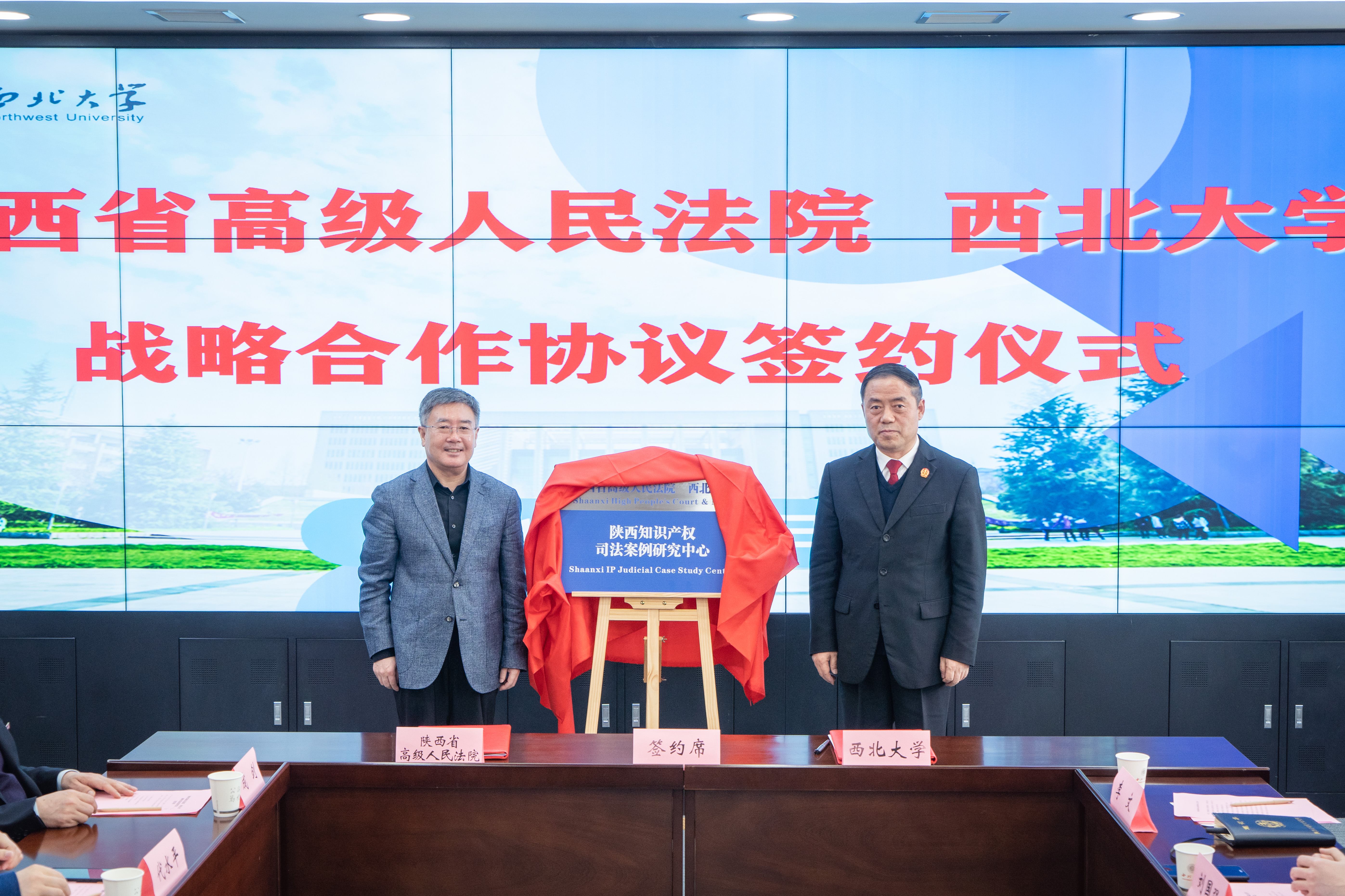 巩富文、郭立宏为“陕西知识产权司法案例研究中心”揭牌