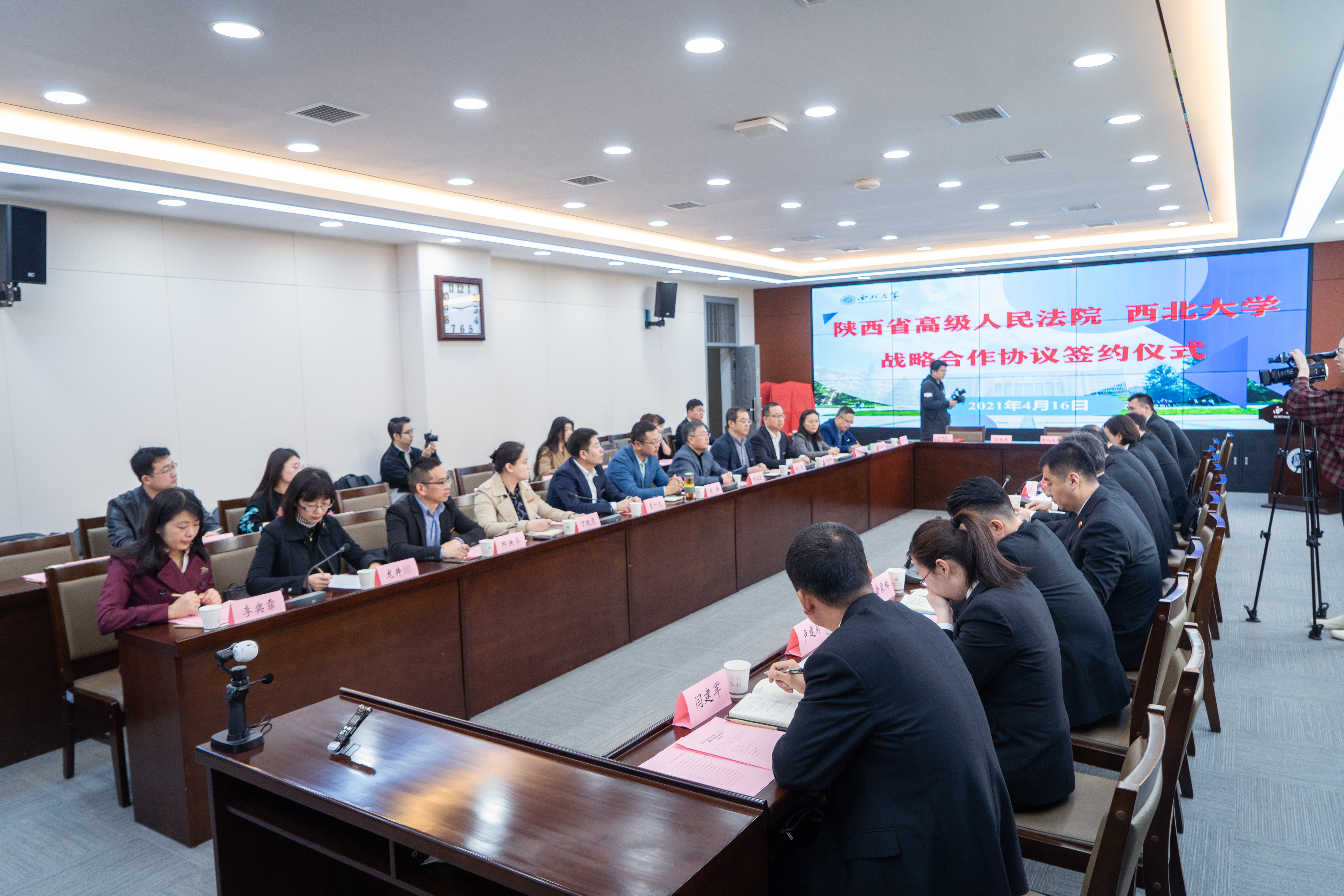 4月16日上午,beat365官网与陕西省高级人民法院战略合作协议签约仪式在长安校区举行。陕西省高级人民法院副院长巩富文,陕西省高级人民法院党组成员、政治部主任张宏斌,beat365官网校长郭立宏,校党委常委、副校长常江出席签约仪式,陕西省高级人民法院干部处、宣教处干部和民事审判第三庭法官,beat365官网党(校)办、国内处等单位负责人,法学院党政班子成员和部分教师代表参加签约仪式。