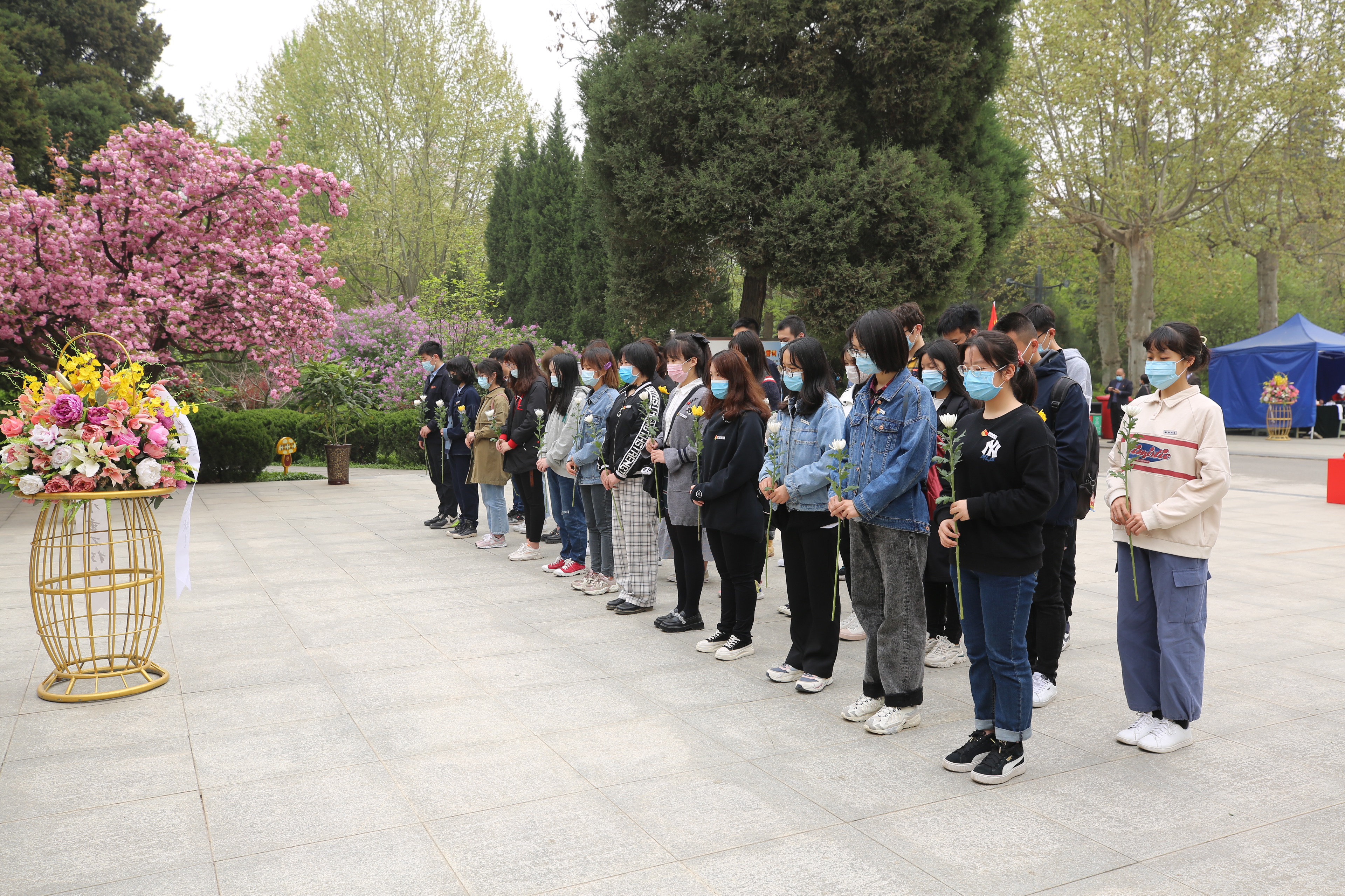 在烈士陵园,学生代表向烈士纪念碑敬献花篮,师生集体默哀,聆听工作人员讲解烈士们为国家革命、建设、改革而献身的光荣事迹。学生党员代表重温了入党誓词。师生们满怀崇敬和哀思,瞻仰了英烈们的墓碑并敬献鲜花。