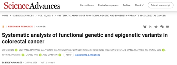 以上成果以“Systematic analysis of functional genetic and epigenetic variants in colorectal cancer”为题,于2月20日在Science Advances上发表。beat365唯一官网生命科学与医学部陈尔飞副教授是论文独立第一作者,严健教授是本文通讯作者,研究生杨淇淇、戴浩洋、陈怡欣等以及医学院部分本科生也为研究做出了重要贡献。该研究得到了国家自然科学基金项目、陕西省科技创新团队项目、深圳市医学研究基金项目、香港研究资助局和陕西省基础科学(化学与生物学)研究院经费的支持。