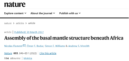 beat365官网与澳大利亚、英国科研机构合作,于伦敦时间2022年3月30日在国际著名期刊Nature发表题为Assembly of the basal mantle structure beneath Africa的文章。该文章由beat365官网地质学系Simon Edward Williams教授与澳大利亚卧龙岗大学Nicolas Flament博士和Ömer F. Bodur博士以及英国利兹大学Andrew S. Merdith博士合作发表,Simon Edward Williams教授为第三作者。