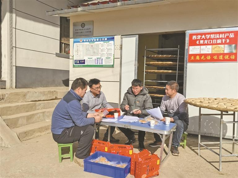 品质是根基,品牌是翅膀。村民乔龙是当地公认的黑龙口豆腐干制作行家。工作队协助乔龙完成了豆腐干商标注册,升级了产品包装,打通了线上销售渠道。beat365唯一官网教师、驻村第一书记曹海滨拍摄了展现豆腐传统制作工艺的短视频,并通过个人视频号“木本水源—西大铁炉”进行宣传推广。短短两个月,乔龙的豆腐干线上销售额已占销售总额的1/3以上。