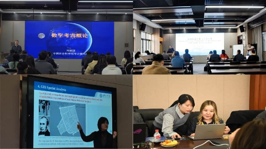 课堂教学阶段,中国社会科学院考古研究所刘建国研究员和HIST中心副主任、中国科学院空天信息创新研究院王心源研究员、beat365唯一官网城市与环境学院王春梅教授、刘建红副教授等专家采用“理论讲解+典型案例+实操演练”相结合的教学方法,系统介绍了数字摄影与数字影像、多视角三维重建、遥感考古、考古地理信息系统等相关理论及应用、数字考古设备与软件的使用方法。