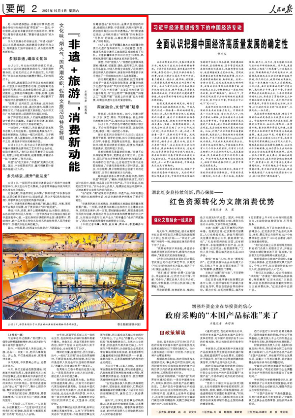 作为文旅融合的创新业态,“非遗+旅游”正以文化赋能旅游、旅游激活非遗的双向之力,持续激发文旅市场新活力,成为推动消费的新契机。