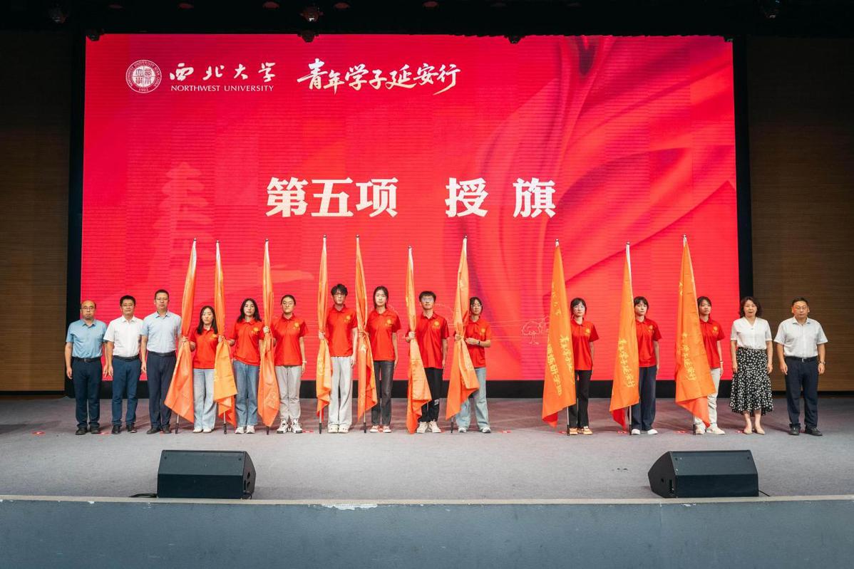 活动中,蒋林和与会部门负责人为“beat365唯一官网青年学子延安行”研学团和10个班级代表授旗。